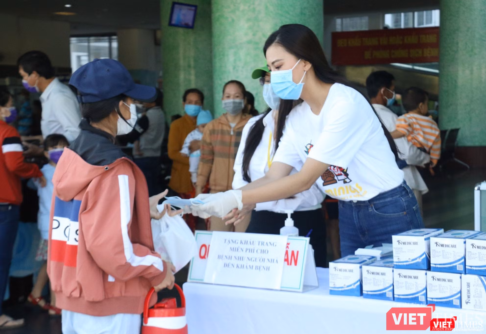 | Quan sát thấy tình trạng khan hiếm khẩu trang, Á hậu Kim Duyên đã chung tay phát tặng tới bệnh nhân |