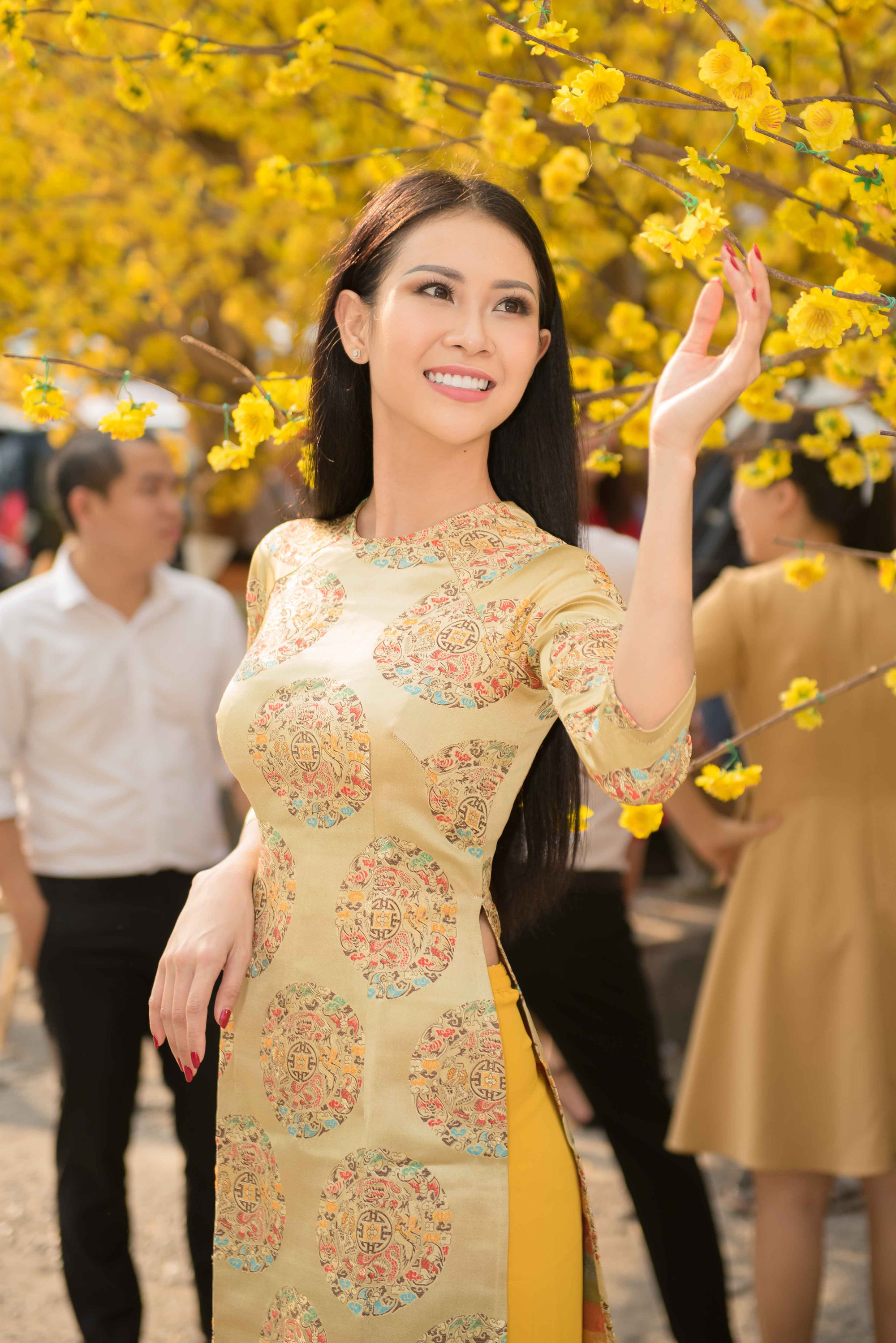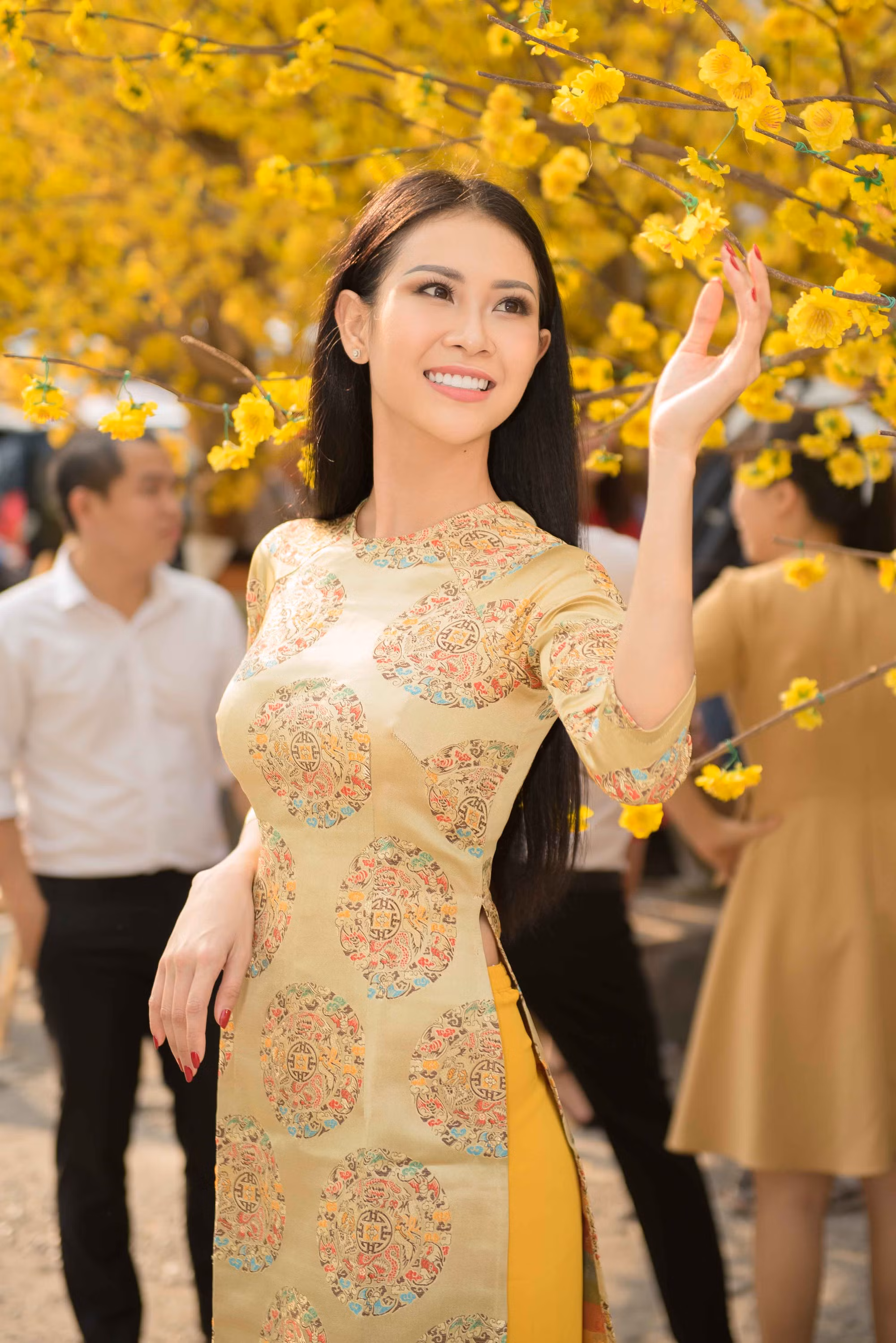 Á hậu Đại sứ Du lịch Thế giới 2018 Liên Phương vừa xuất hiện trên đường phố Sài Gòn đẹp lung linh đón xuân mới Kỷ Hợi 2019.