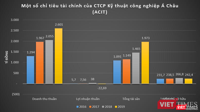 Sang năm 2019, ACIT bất ngờ báo lỗ 22,69 tỉ đồng, trong khi doanh thu vẫn tăng trưởng 26% lên đạt 2.601 tỉ đồng.
