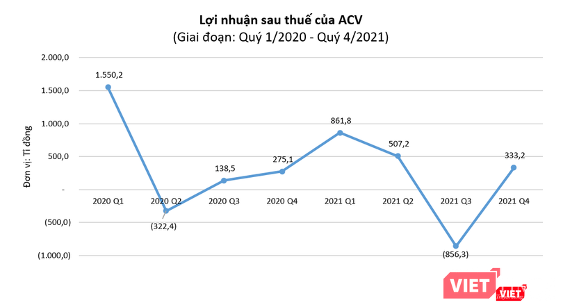 Luỹ kế cả năm 2021, ACV ghi nhận doanh thu thuần năm 2021 ở mức 4.758,4 tỉ đồng, giảm 38,7% so với năm trước. Đồng thời, doanh nghiệp này cũng ghi nhận khoản lỗ gộp 685,7 tỉ đồng, trong khi năm 2020 lãi gộp 1.389,4 tỉ đồng.
