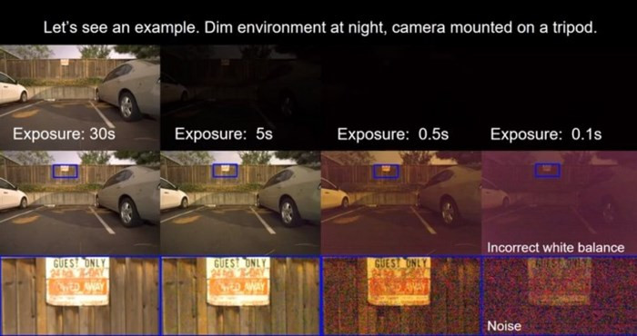 Bằng cách cung cấp cho bộ xử lý hình ảnh RAW hai bức ảnh giống hệt nhau, một tấm phơi sáng trong thời gian ngắn và một tấm phơi lâu, nhóm nghiên cứu đã thu được một tấm ảnh với độ noise thấp và màu sắc không bị ảnh hưởng. Như vậy, phương pháp sử dụng thuật toán AI giúp hình ảnh chụp được ít noise hơn mà không cần phải nâng tốc độ màn trập.