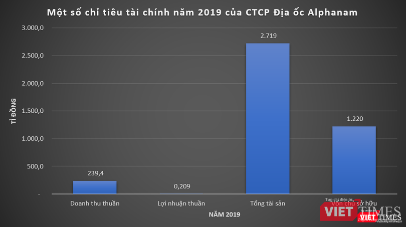 Tương tự như ALP hay AME, dữ liệu của VietTimes cho thấy, kết quả kinh doanh của Địa ốc Alphanam cũng chưa thực sự hiệu quả. Cụ thể, năm 2019, doanh thu thuần của Địa ốc Alphanam đạt 239,4 tỉ đồng, tuy nhiên lãi thuần chỉ ở mức 209 triệu đồng, tương ứng biên lợi nhuận 0,087%.
