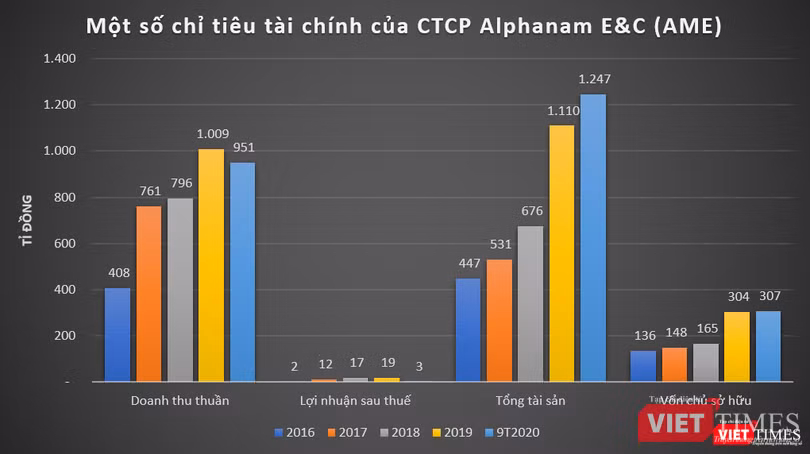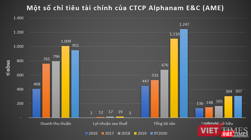 Luỹ kế 9 tháng đầu năm 2020, doanh thu thuần của AME đạt 951 tỉ đồng, lãi sau thuế chỉ vỏn vẹn ở mức 2,87 tỉ đồng.