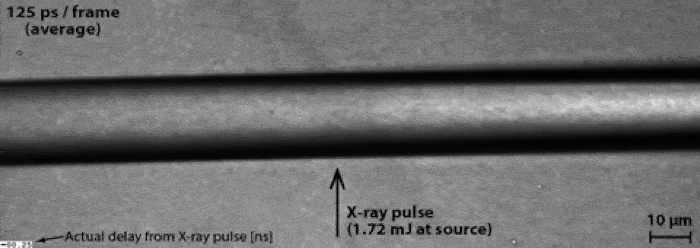 Đồng thời, trong buồng chân không, các nhà khoa học đã tiến hành bắn phá các hạt nước cực kỳ nhỏ và mỏng (hơn cả sợi tóc) cùng với các xung tia X chụm.