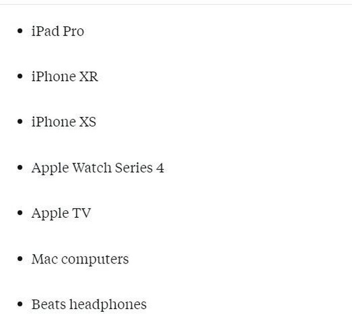 Nghĩa là các sản phẩm của Apple được bán trên Amazon từ trước đến giờ không hề nằm trong bất cứ thỏa thuận nào của 2 gã khổng lồ mà chỉ thông qua bên bán lẻ thứ 3. Sau đây là danh sách các sản phẩm mới nhất sẽ được bán trực tiếp trên nền tảng của Amazon: