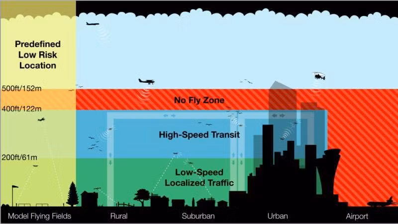 Để đảm bảo an toàn bay, Amazon đề xuất hạn chế trần bay của các máy bay không người lái ở độ cao tối đa là 400 feet (~ 122 m), có nghĩa là thấp hơn 100 feet (~ 30 m.) độ cao tối thiểu cho phép của ngành hàng không dân dụng.