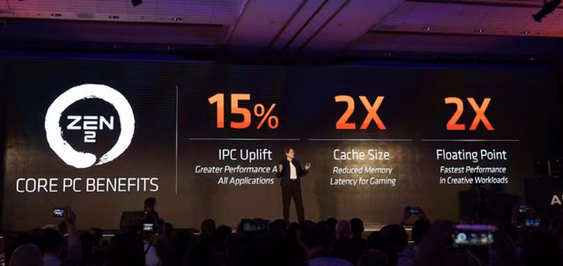 Kiến trúc Zen 2 áp dụng trên Ryzen 3000 series sẽ nhanh hơn trung bình 15%, AMD cũng tăng thêm bộ nhớ đệm nữa khiến cho hiệu năng tăng cao. Thế nhưng điều bất ngờ là chúng lại giảm bớt điện năng tiêu thụ, trở nên vô cùng hoàn hảo.