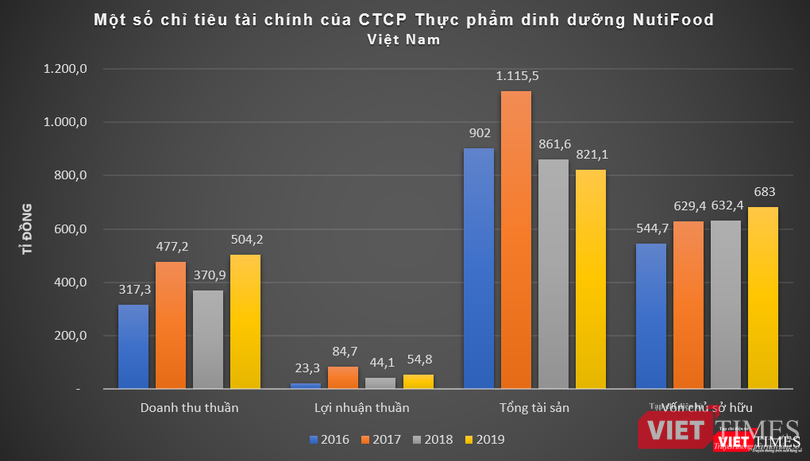 Tính đến cuối năm 2019, tổng tài sản của NutiFood Việt Nam đạt 1.289 tỉ đồng, vốn chủ sở hữu ở mức 806 tỉ đồng, tăng trưởng lần lượt 17,6% và 11% so với thời điểm đầu năm.