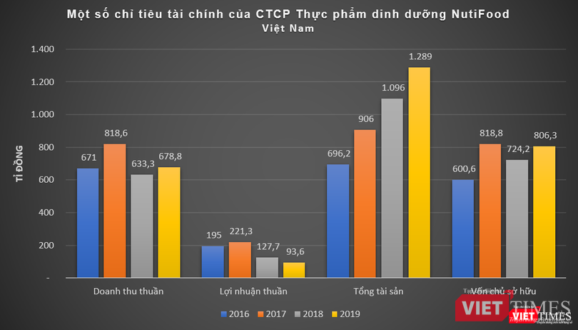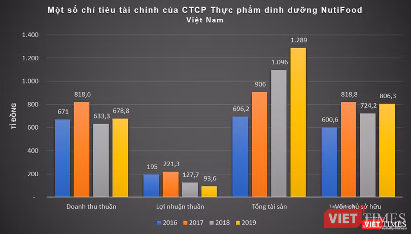 Dữ liệu của VietTimes cho thấy, trong 4 năm trở lại đây, NutiFood Việt Nam luôn duy trì doanh thu trên mức 600 tỉ đồng, cùng đó là khoản lãi thuần từ 1-200 tỉ đồng mỗi năm.
