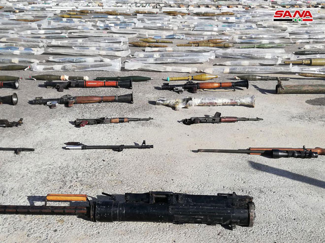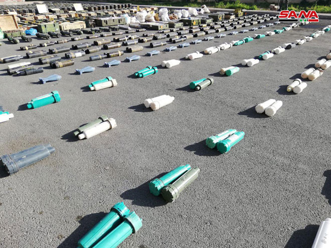 Trong những hoạt động đảm bảo an ninh và rà phá bom mìn các khu vực dân cư gần thành phố Damascus, quân đội Syria, với sự giúp đỡ của người dân địa phường, phát hiện được rất nhiều loại vũ khí và đạn dược khác nhau do lực lượng Hồi giáo cực đoan chôn giấu bí mật ở ngoại ô Damascus.