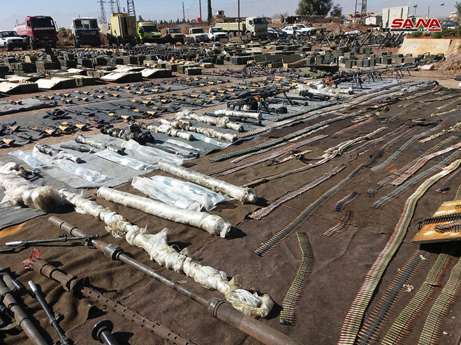 Một số lượng vũ khí khổng lồ bị phát hiện ở tỉnh Quneitra và Daraa. Ảnh minh họa: SANA.
