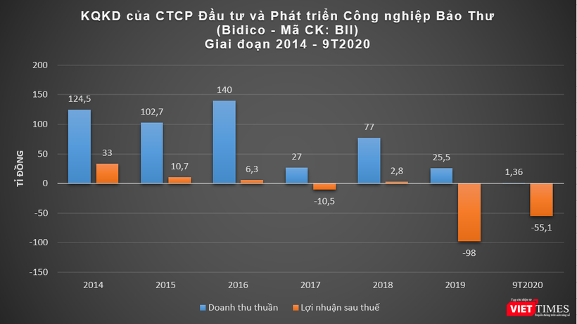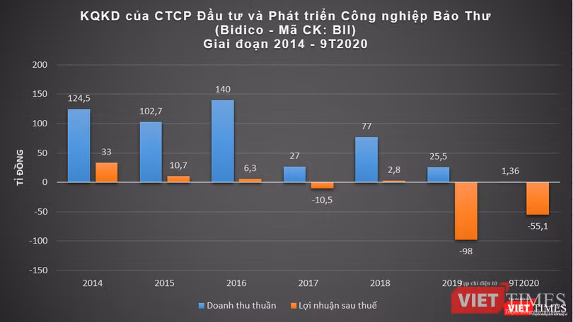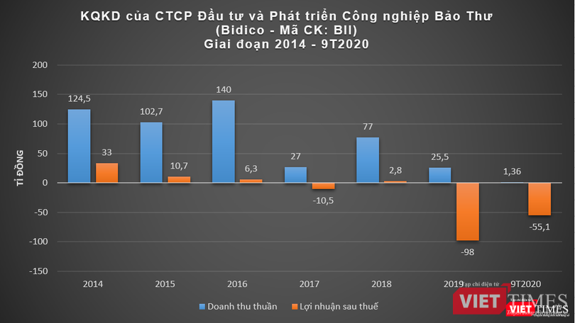 Sang năm 2020, kết quả kinh doanh của Bidico cũng không được cải thiện khi luỹ kế 9 tháng đầu năm, doanh thu thuần của công ty chỉ đạt vỏn vẹn 1,36 tỉ đồng, báo lỗ sau thuế 55,1 tỉ đồng. Tại ngày 30/9/2020, lỗ sau thuế luỹ kế của Bidico lên tới 123,6 tỉ đồng.
