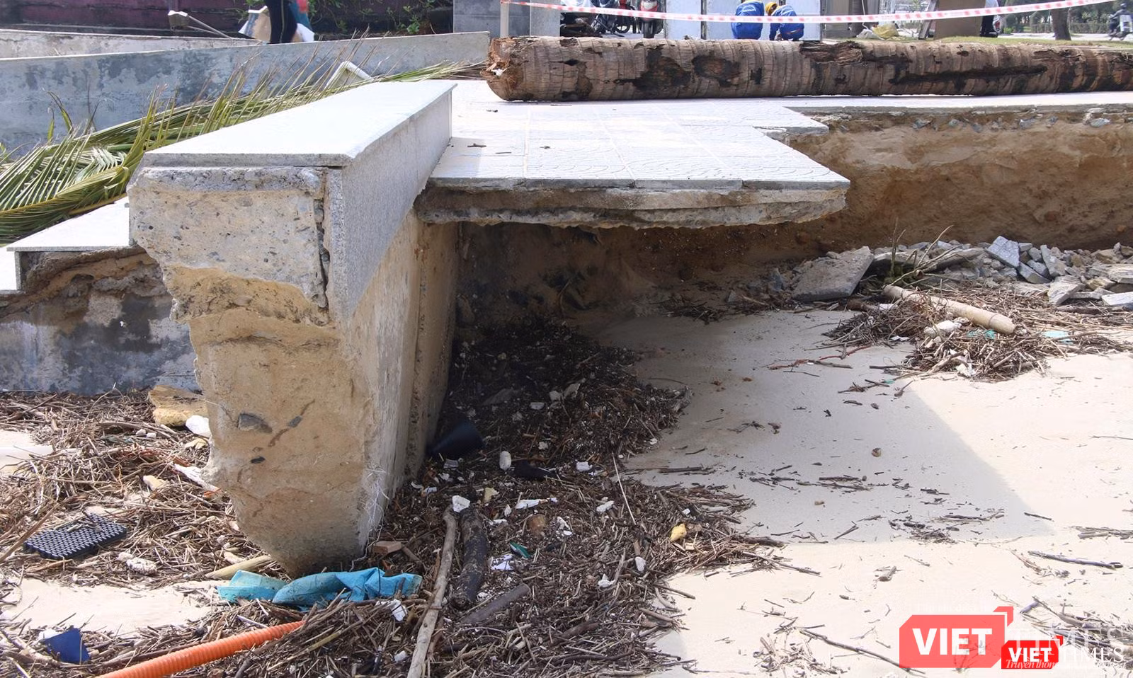 Một đoạn vỉa hè bị sóng biển và nước làm xói