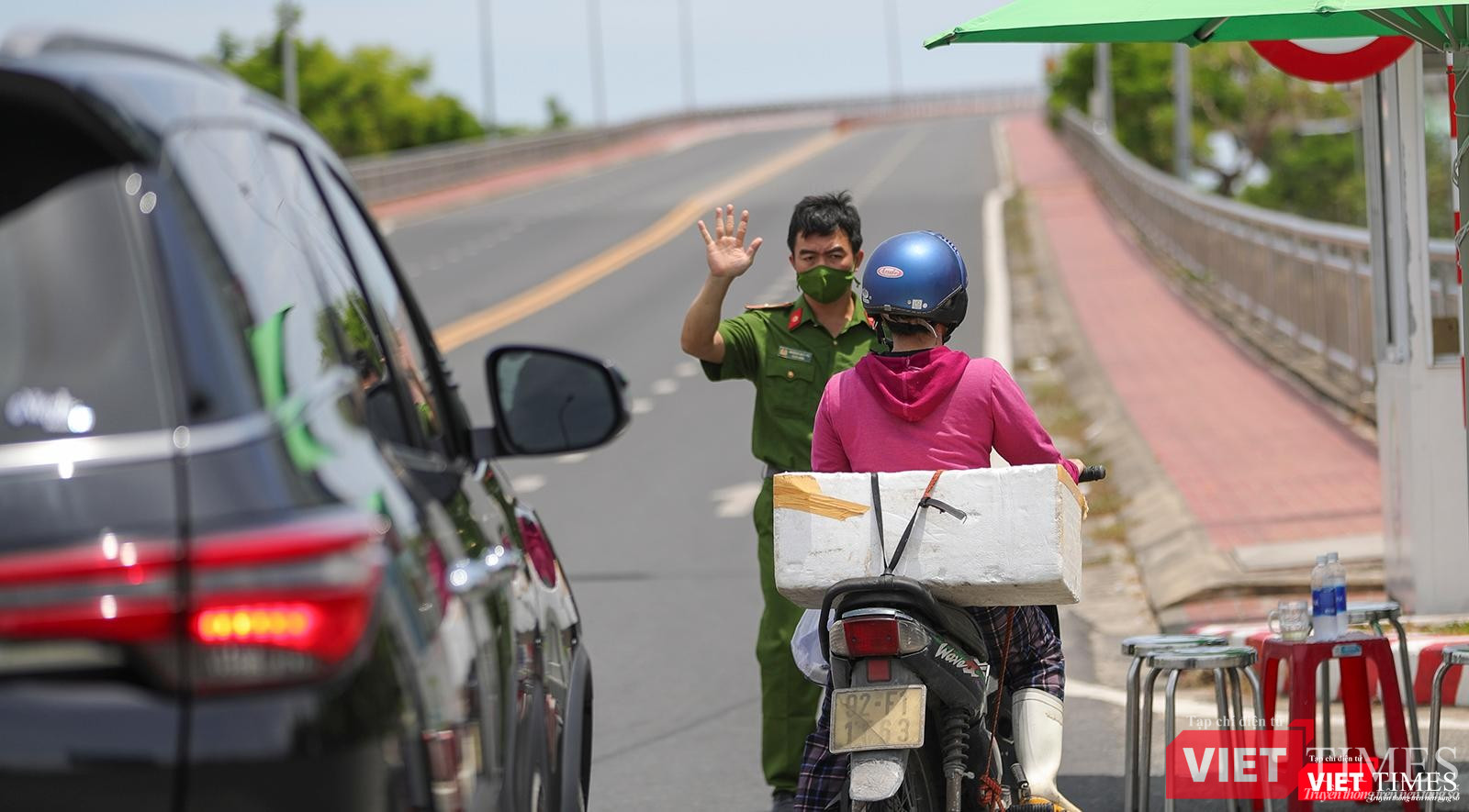 Chốt kiểm soát khu vực bùng binh cuối đường Võ Văn Kiệt giao với đường Võ Nguyên Giáp, phong toả toàn bộ tuyến ven biển từ đường Võ Văn Kiệt về phía bắc quận Sơn Trà
