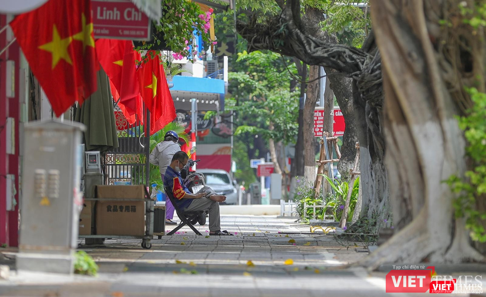 Vỉa hè đường Bạch Đằng tromg sáng ngày 2/9 không một bóng người