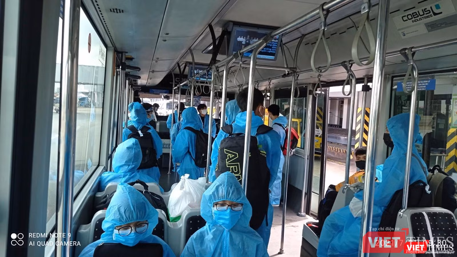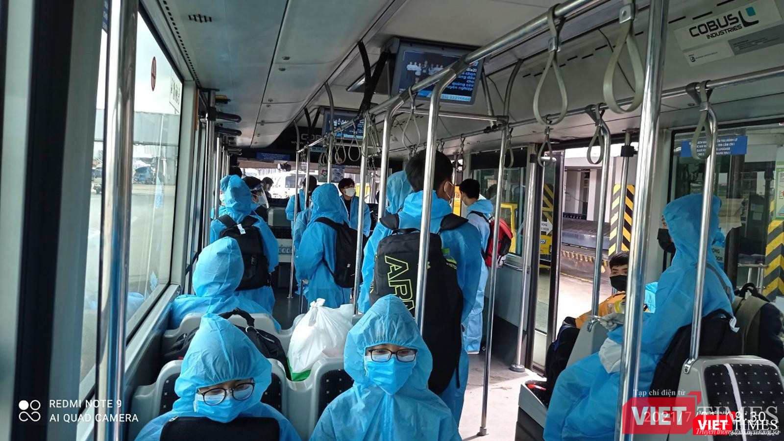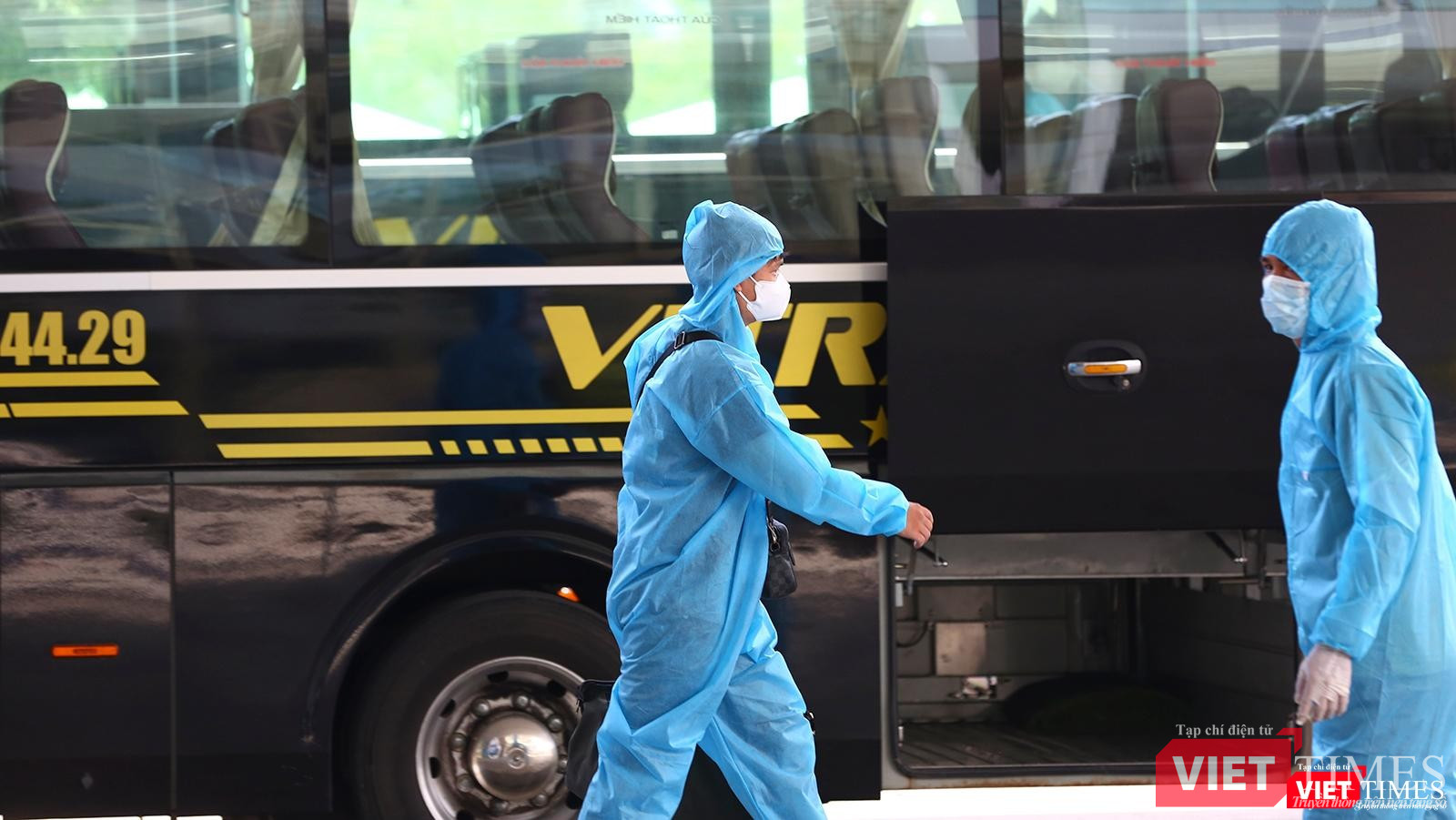 Lúc này, phía ngoài nhà ga, xe chở số công dân về nơi cách ly đã sẵn sàng