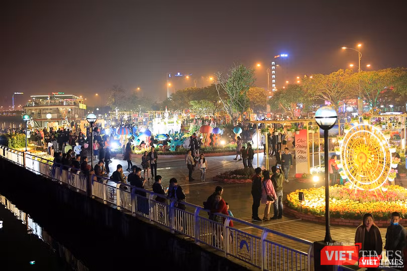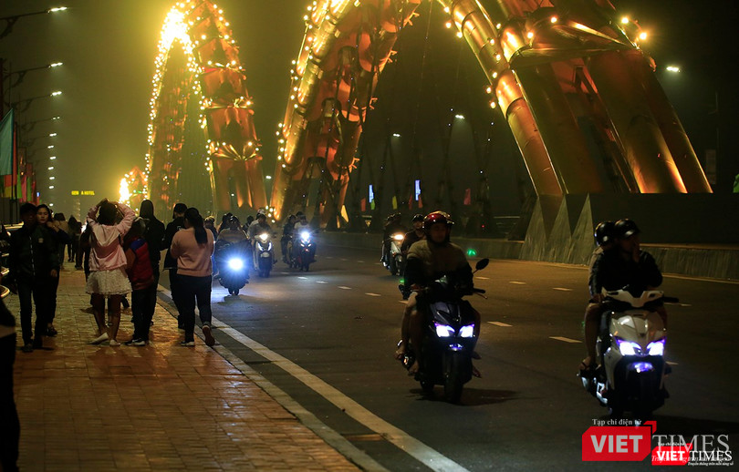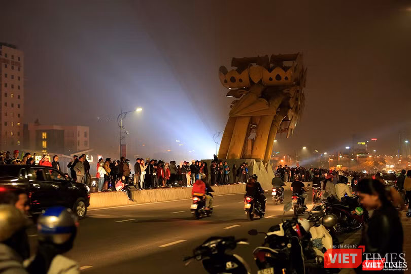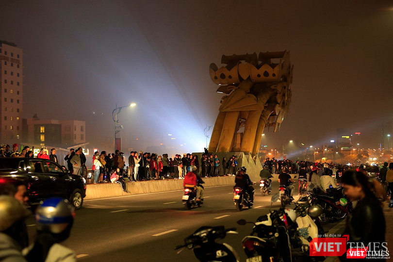 Một diễn biến khác, người dân Đà Nẵng di chuyển về cầu Rồng để xem bắn pháo hoa đêm giao thừa
