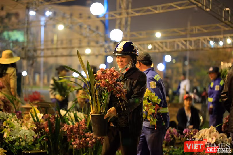 Một chủ vườn cố nán lại quá giờ giao thừa để bán nốt số lan đang còn quá nhiều