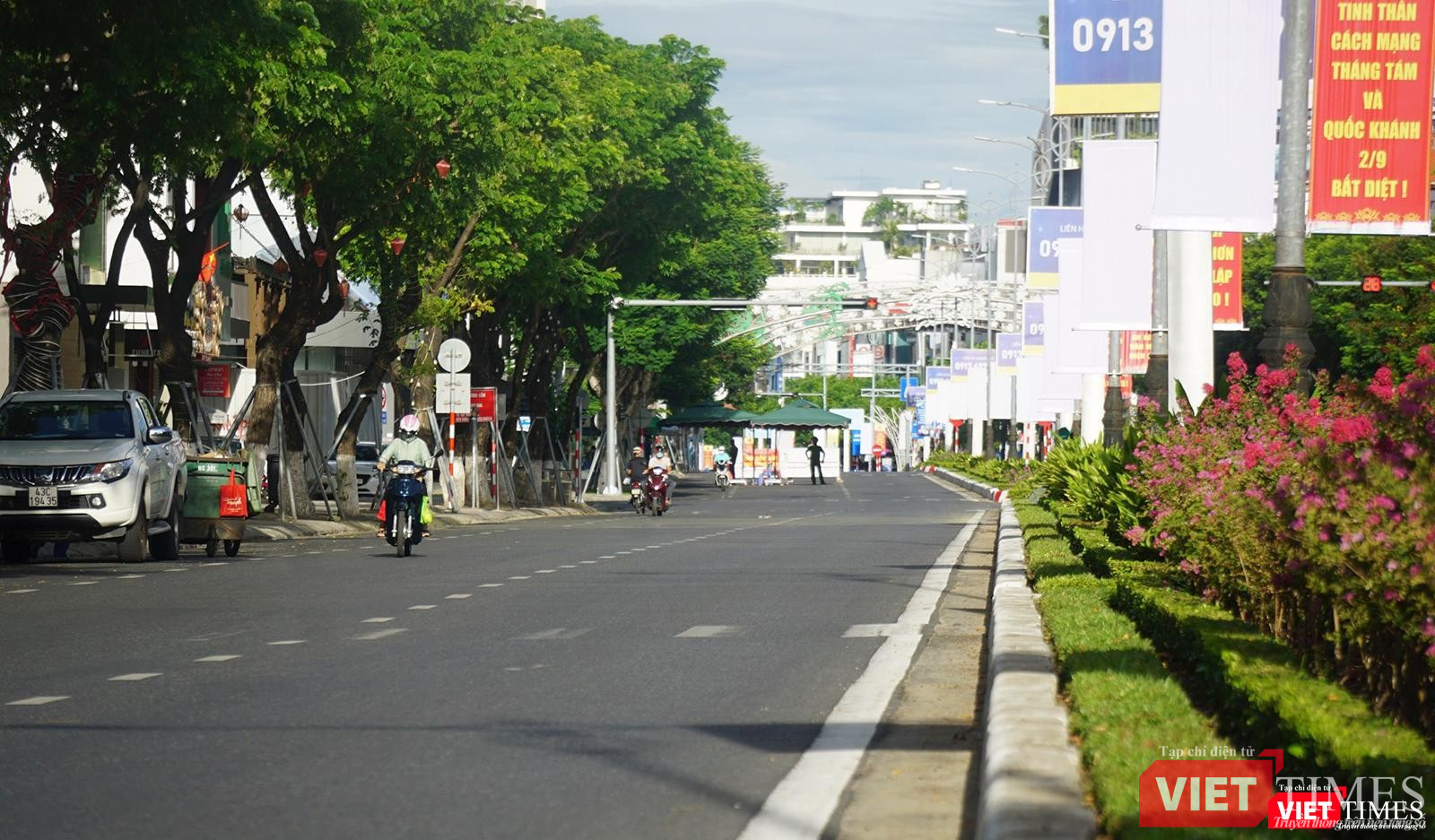 Ghi nhận trên các tuyến đường tại trung tâm TP Đà Nẵng trong ngày 15/8, lưu lượng xe qua lại vẫn vắng vẻ, lực lượng chức năng vẫn túc trực tại các chốt kiểm soát của ngõ ra vào các quận 24/24.
