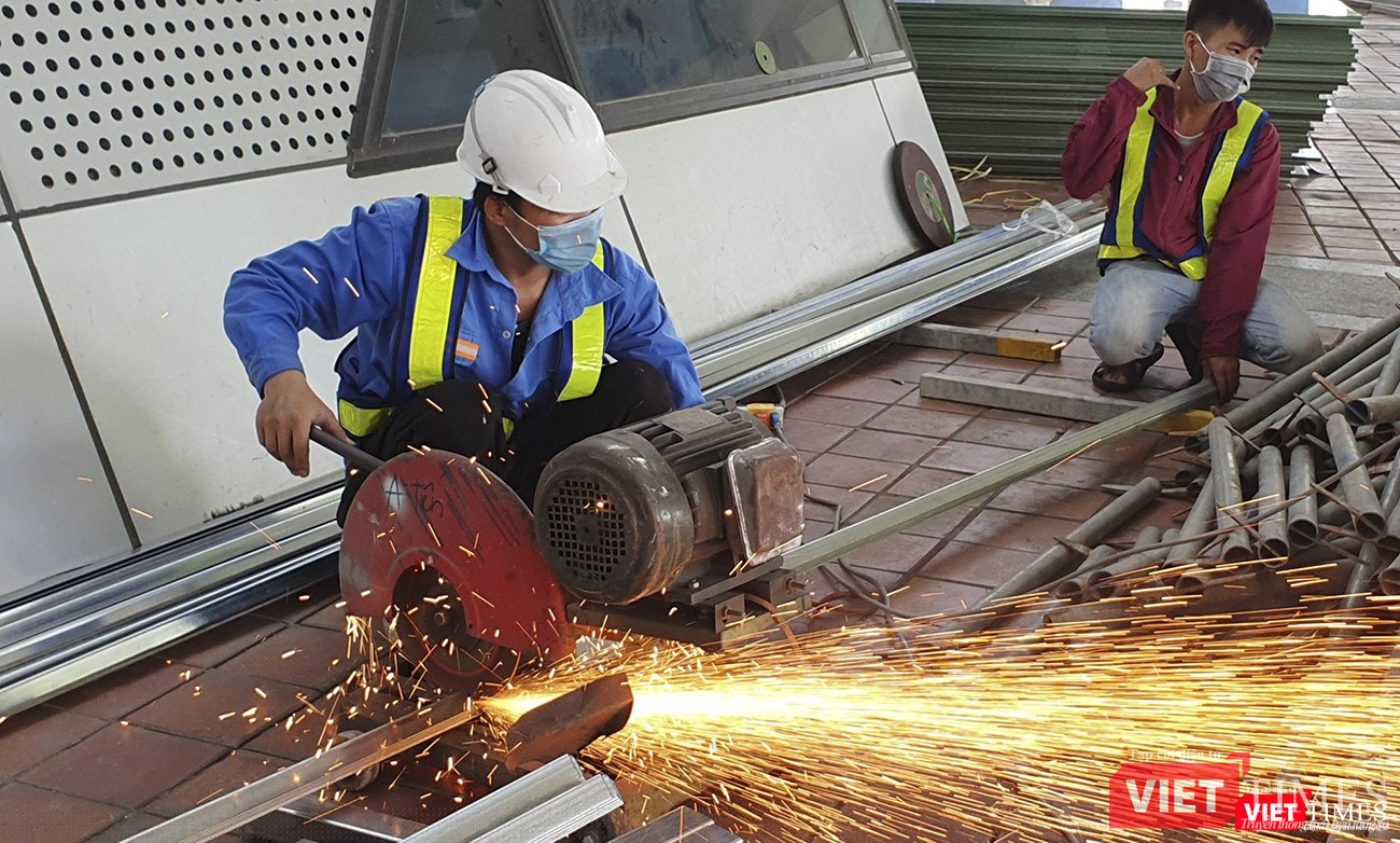| Các công nhân đang nỗ lực thi công ở bên trong |