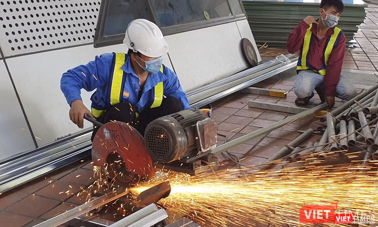 | Công nhân thi công khẩn trương |