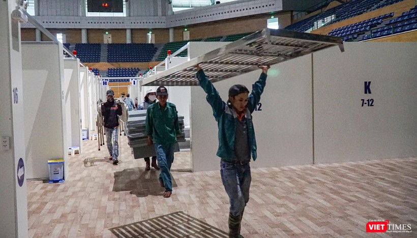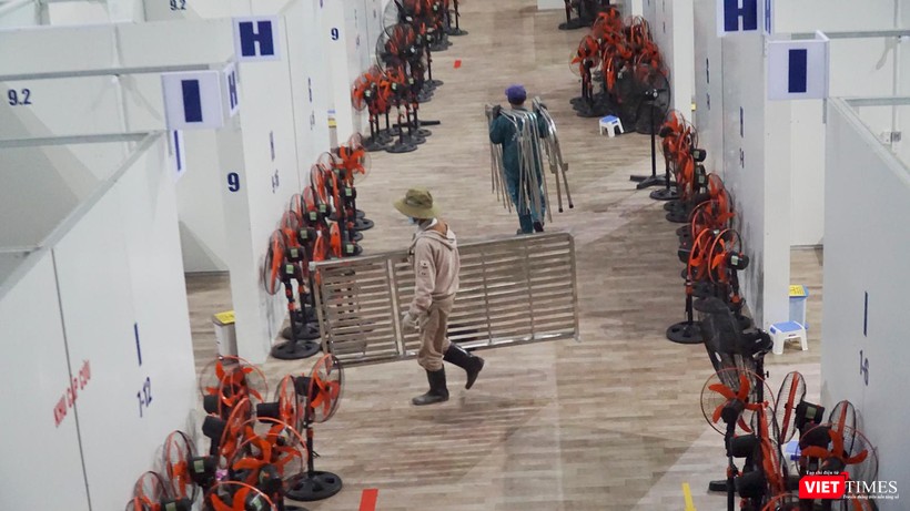 VietTimes xin gửi đến bạn đọc một số hình ảnh công nhân tháo dỡ Bệnh viện dã chiến Tiên Sơn để chi viện cho các tỉnh phía bắc: