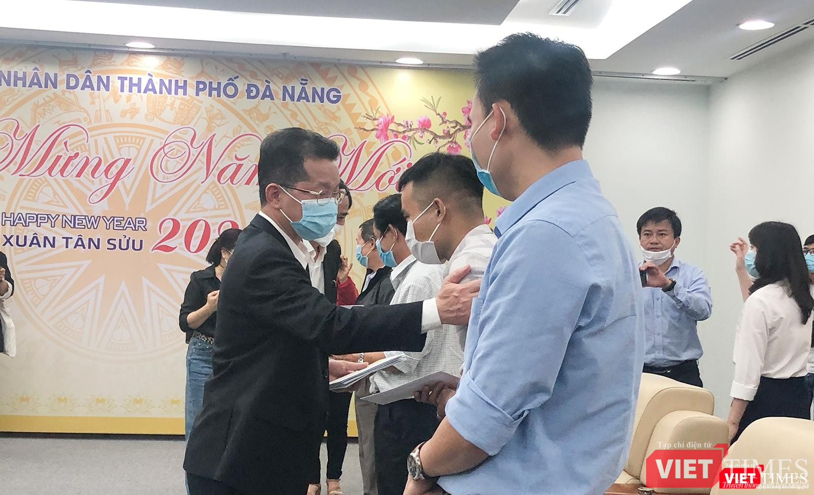 | Chủ tịch UBND TP Đà Nẵng Lê Trung Chinh động viên các bác sĩ |