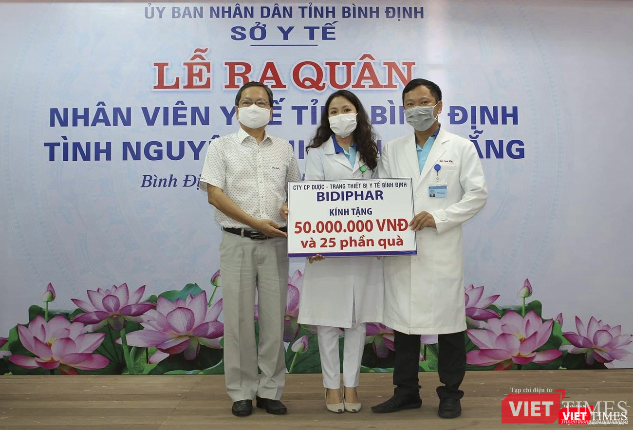 | Buổi lễ tiễn đoàn y bác sỹ của tỉnh Bình Định ra chi viện cho Đà Nẵng nhận được nhiều sự chung tay của cộng đồng doanh nghiệp (ảnh: Tuấn Dũng) |
