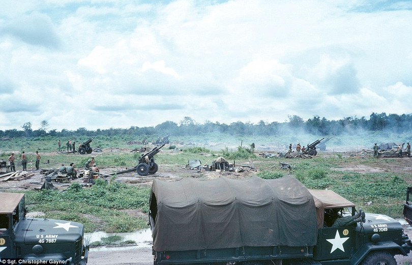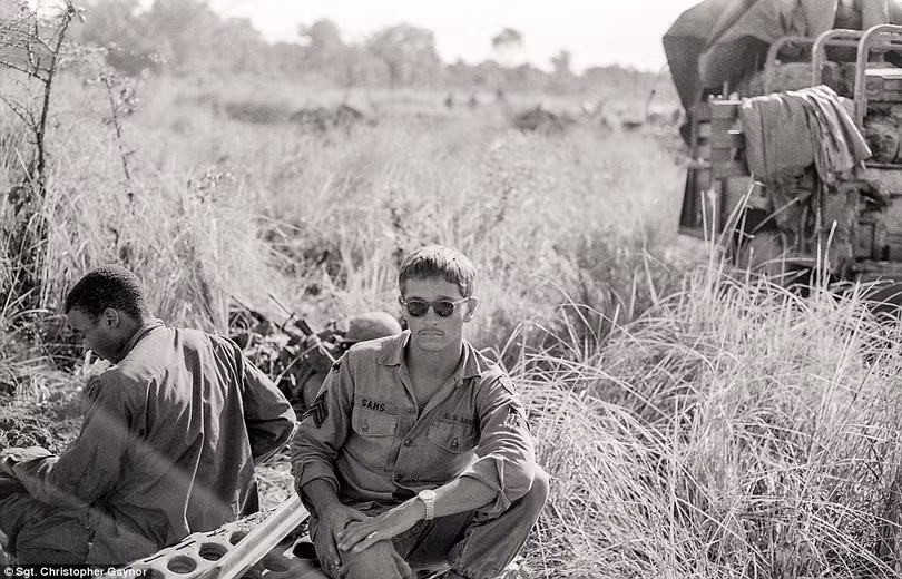 Lính Mỹ ở Lộc Ninh năm 1967, Thomas Corbin (ngón tay quấn băng) chết một năm sau đó.