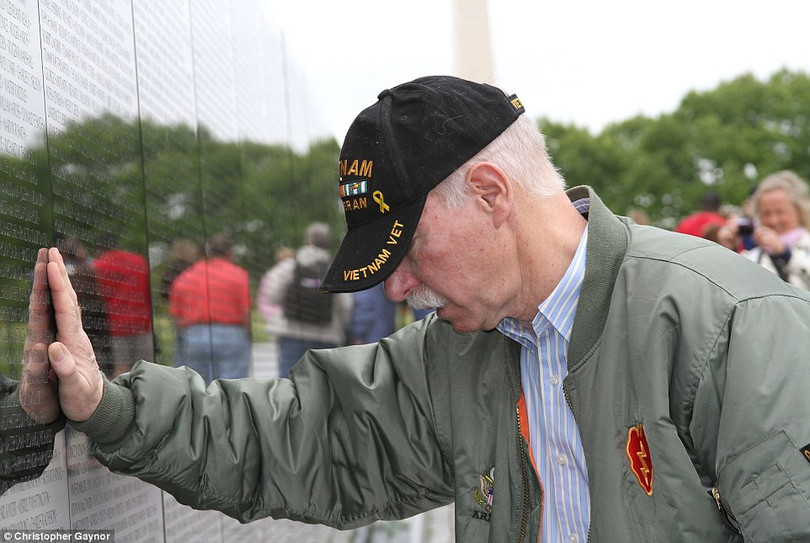 Cựu binh Gaynor thăm bức tường kỷ niệm hơn 58.000 lính Mỹ tử trận trong chiến tranh Việt Nam tại Washington DC.