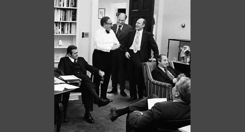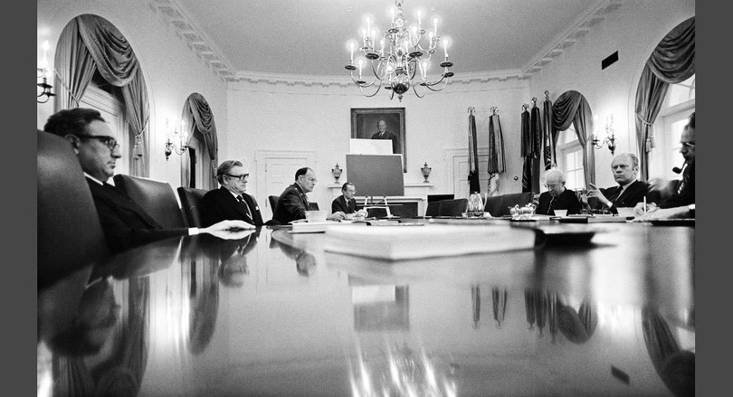 Trong bức ảnh hiếm có này, các quan chức CIA trực tiếp tóm tắt tình hình cho tổng thống, có mặt trong cuộc họp là Giám đốc đơn vị tình báo CIA khu vực Đông Á Ted Shackley và Phó Giám đốc phụ trách các văn phòng tình báo an ninh quốc gia George Carver đang cân nhắc và đưa ra cho tổng thống những đánh giá sơ lược.