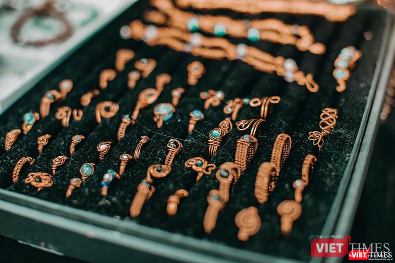 Một góc gian hàng bán đồ trang sức đá chế tác bằng thủ công