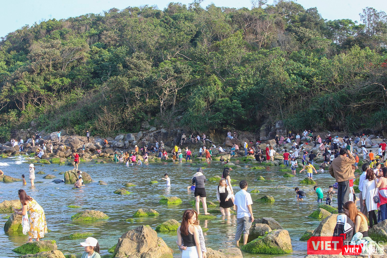 Du khách và người dân đến gành đá Nam Ô (Đà Nẵng) để checkin, chụp ảnh lưu niệm