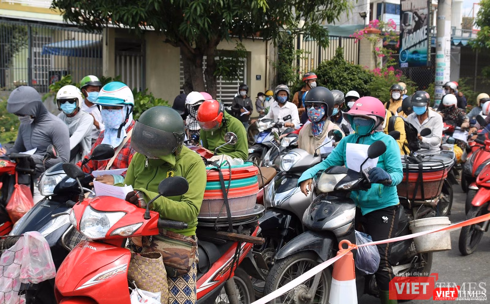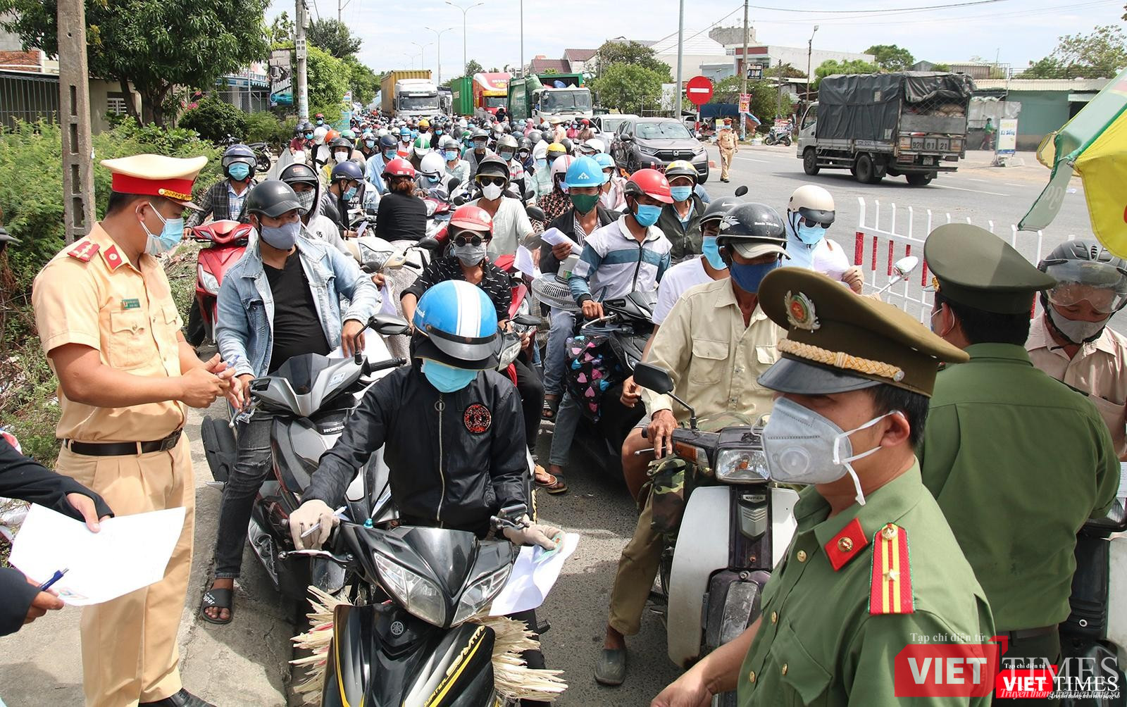 Ghi nhận tại chốt kiểm soát y tế phòng chống dịch COVID-19 phường Điện Thắng Bắc (huyện Điện Bàn, tỉnh Quảng Nam) vào lúc 11h ngày 22/7, hàng ngàn người cùng phương tiện xếp hàng kéo dài hàng trăm mét để được đi qua chốt, trở về quê.