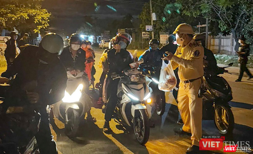 Rạng sáng ngày 25/7, Công an quận Liên Chiểu (Đà Nẵng) cho biết, sau khi nhận được thông tin có khoảng 100 xe máy với gần 200 người từ TP HCM theo đường Hồ Chí Minh về các tỉnh Bắc miền Trung sẽ đi qua địa phân Đà Nẵng, lực lượng CSGT Công an Đà Nẵng và Công an quận Liên Chiểu đã bố trí phương tiện, lực lượng xuyên đêm dẫn đường, hỗ trợ người dân đi xe máy về từ TP HCM qua đèo Hải Vân để tiếp tục về các tỉnh Bắc Trung Bộ.
