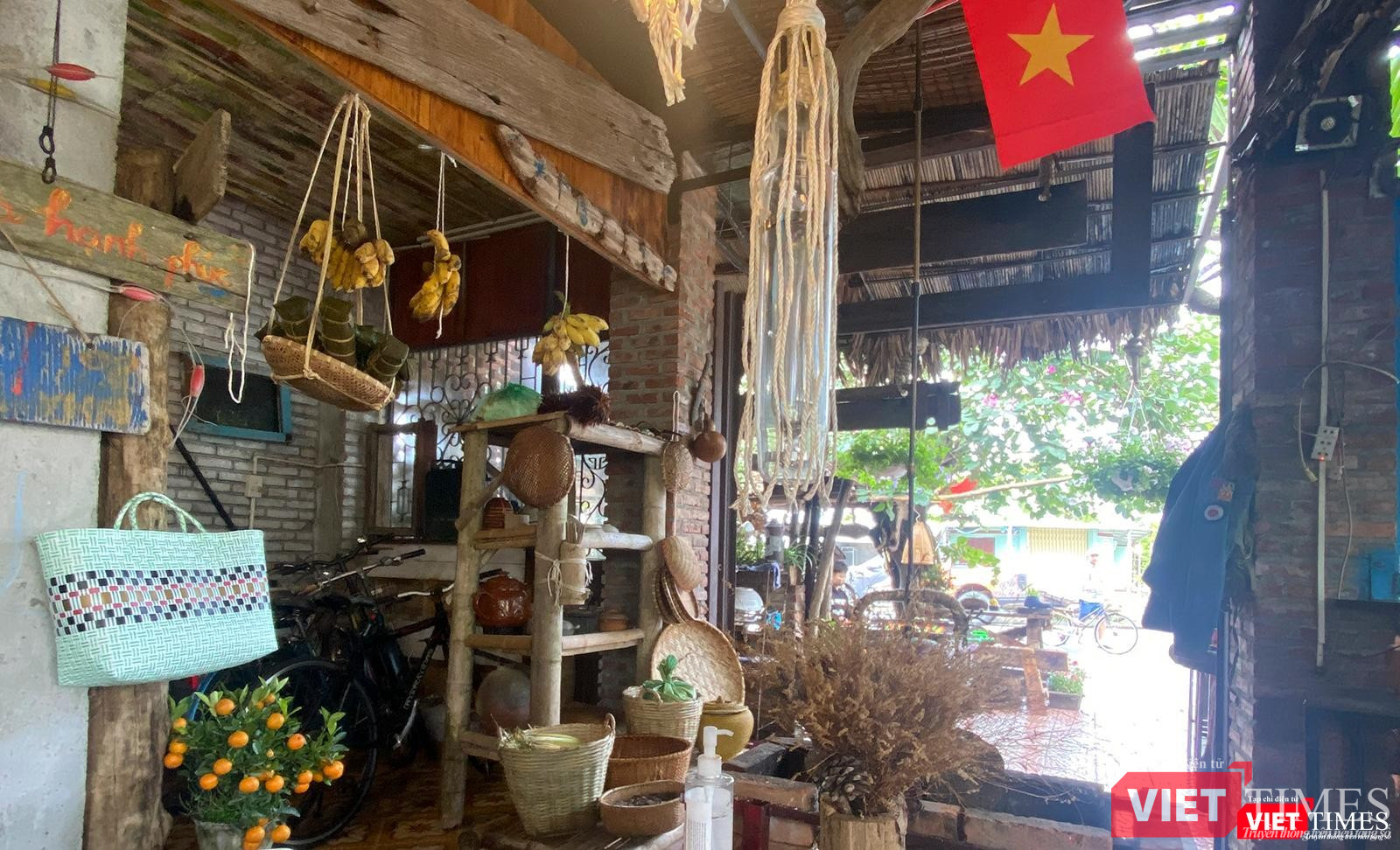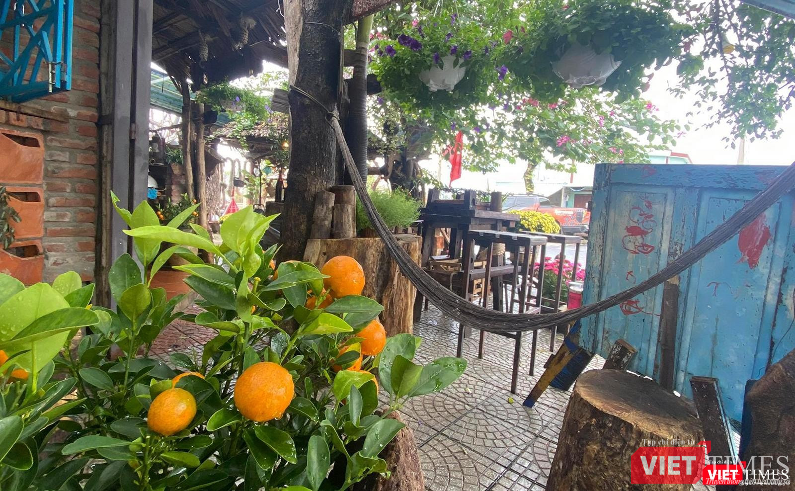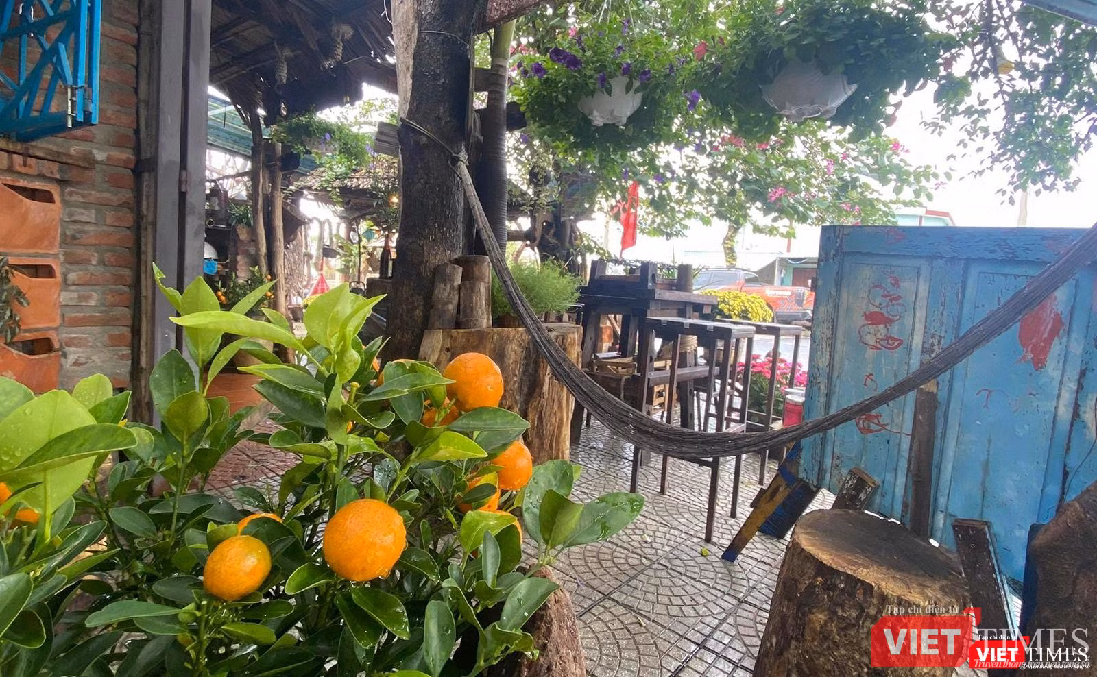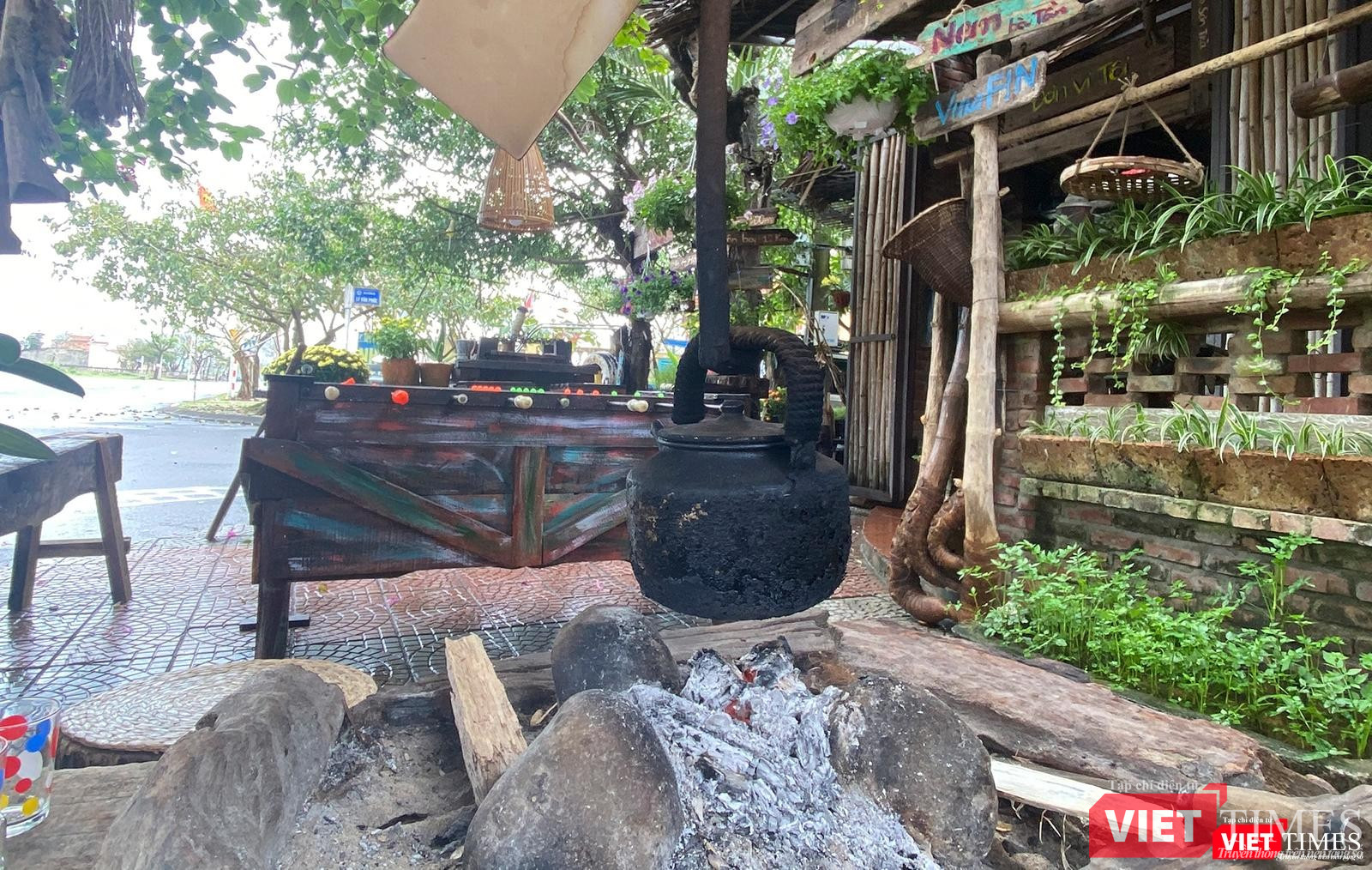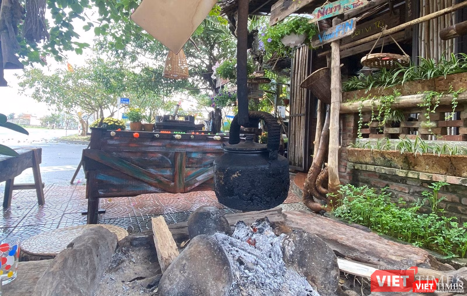 Trong khuôn viên địa chỉ 110 Lý Văn Phức (quận Ngũ Hành Sơn, TP Đà Nẵng), những hình ảnh về ngôi nhà xưa với mái tranh, băng ghế gỗ… cùng cách trang trí bắt mắt, hoài niệm xưa đã “hớp hồn”người xem.