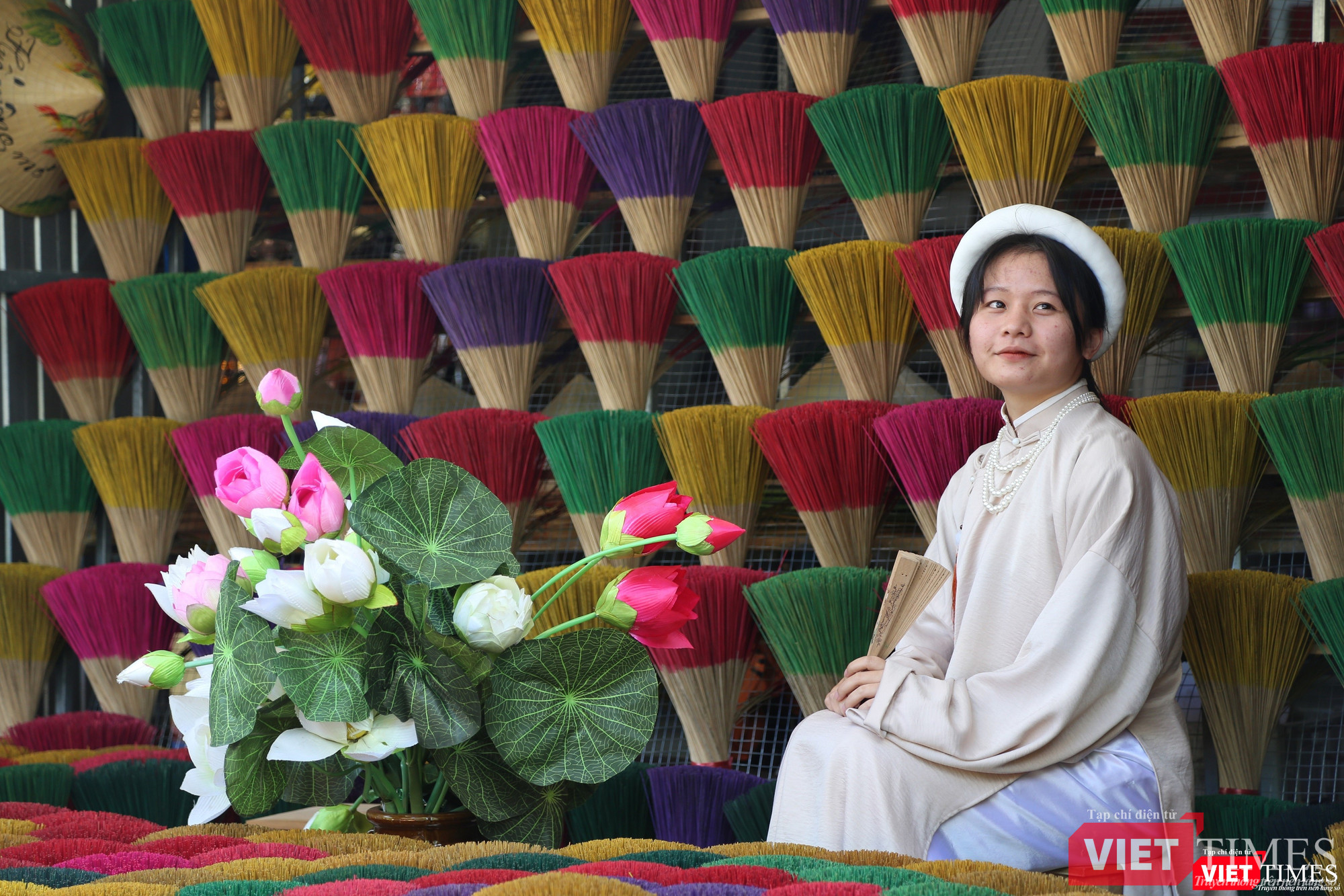 Chị Nguyễn Thị Thanh Hương - chủ cơ sở gian hàng hương - cho hay, vào những ngày cuối tuần, dịp lễ, Tết, du khách đến tham quan, chụp ảnh rất đông. “Để đáp ứng nhu cầu của du khách, các cơ sở phát triển thêm dịch vụ thuê áo dài và bày biện không gian để du khách chụp ảnh, checkin. Mỗi ngày, chúng tôi cho thuê được từ vài chục đến cả trăm bộ áo dài cổ phục” - chị Hương cho biết.