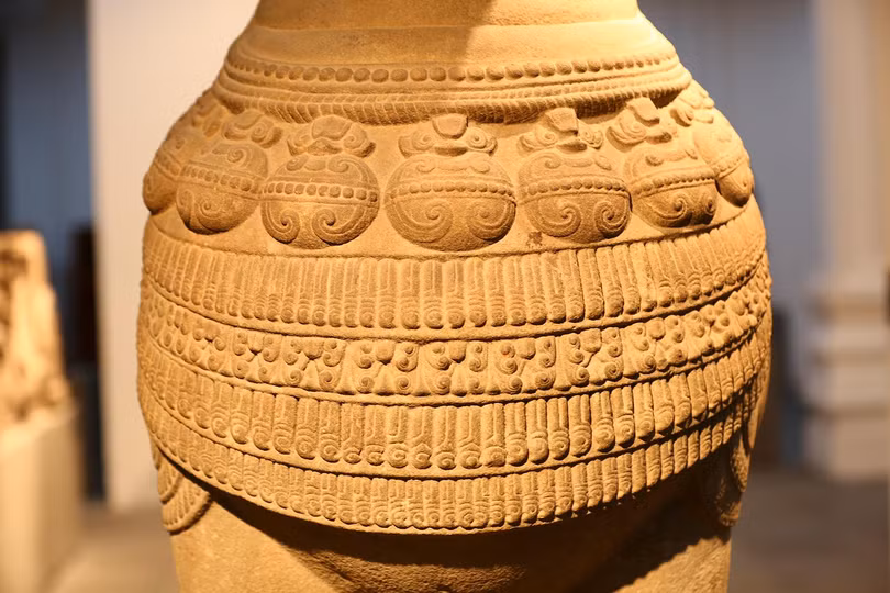 Tượng Thần Ganesha được làm bằng chất liệu sa thạch có niên đại từ thế kỷ thứ VII, được phát hiện vào năm 1903 bởi Viện Viễn Đông Bác cổ Pháp (EFEO)