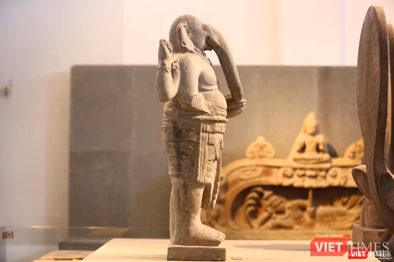 Hiện vật tượng Thần Ganesha được làm bằng chất liệu sa thạch có niên đại từ thế kỷ thứ VII, được phát hiện vào năm 1903 bởi Viện Viễn Đông Bác cổ Pháp (EFEO), tượng có kích thước cao 95cm, dài 48cm, rộng 34cm. Tượng được đưa về lưu giữ và giới thiệu tại Bảo tàng Điêu khắc Chăm từ năm 1918. Theo thần thoại Ấn Độ, Ganesha là vị thần may mắn, trí tuệ và văn học, có khả năng dẹp bỏ những khó khăn, trở ngại trong cuộc sống.
