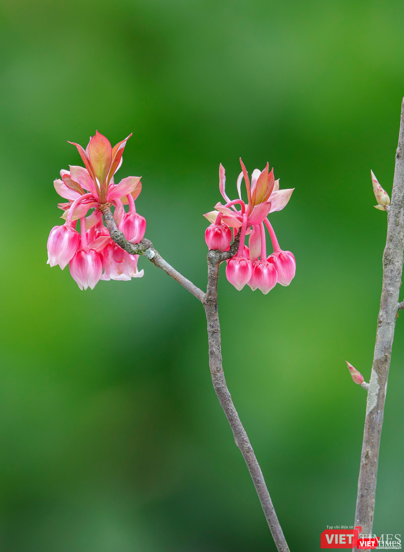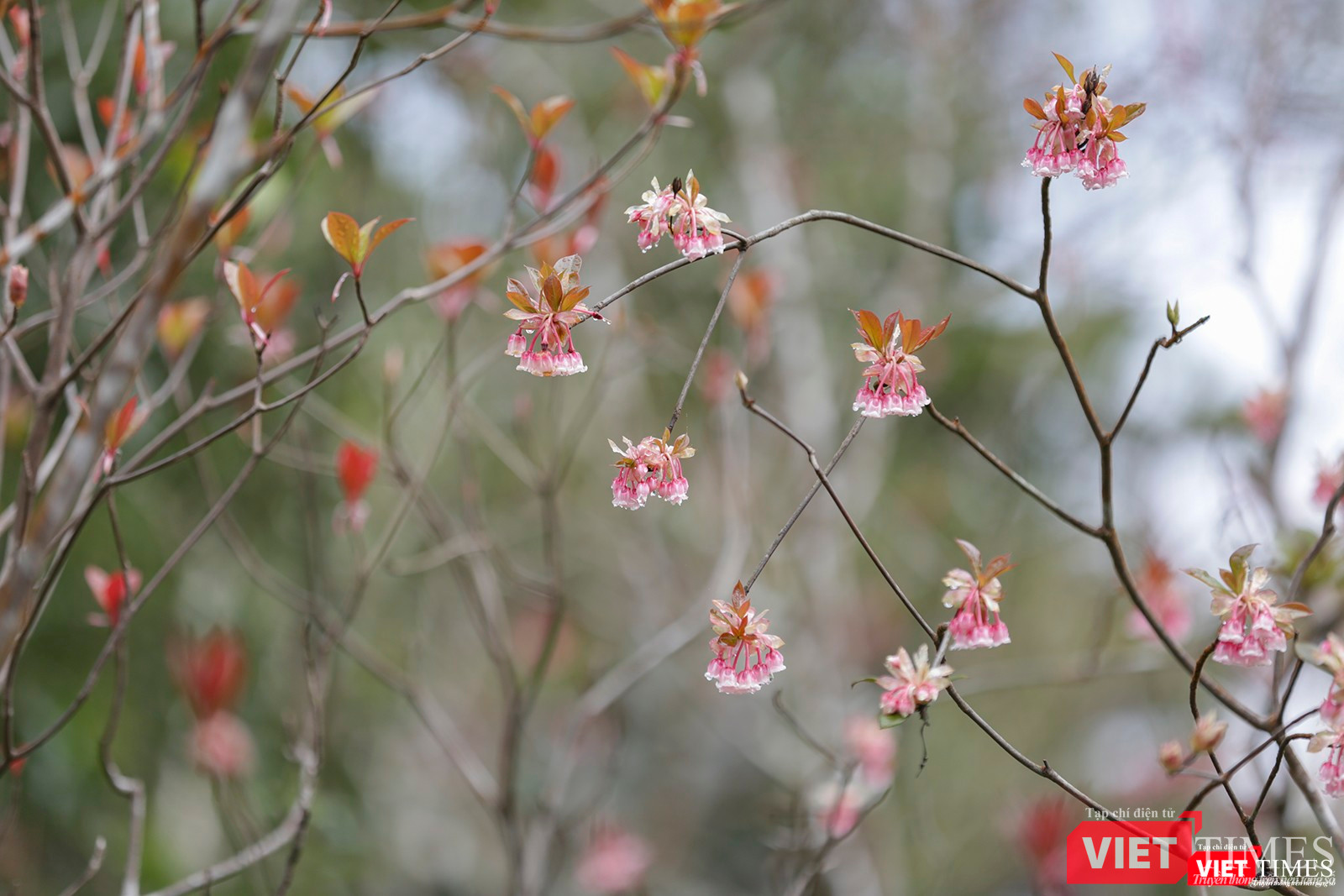 Được gọi là đào chuông vì khi nở, hoa có hình dáng tựa những chiếc chuông nhỏ xinh treo trên những cành cây rêu gầy guộc.