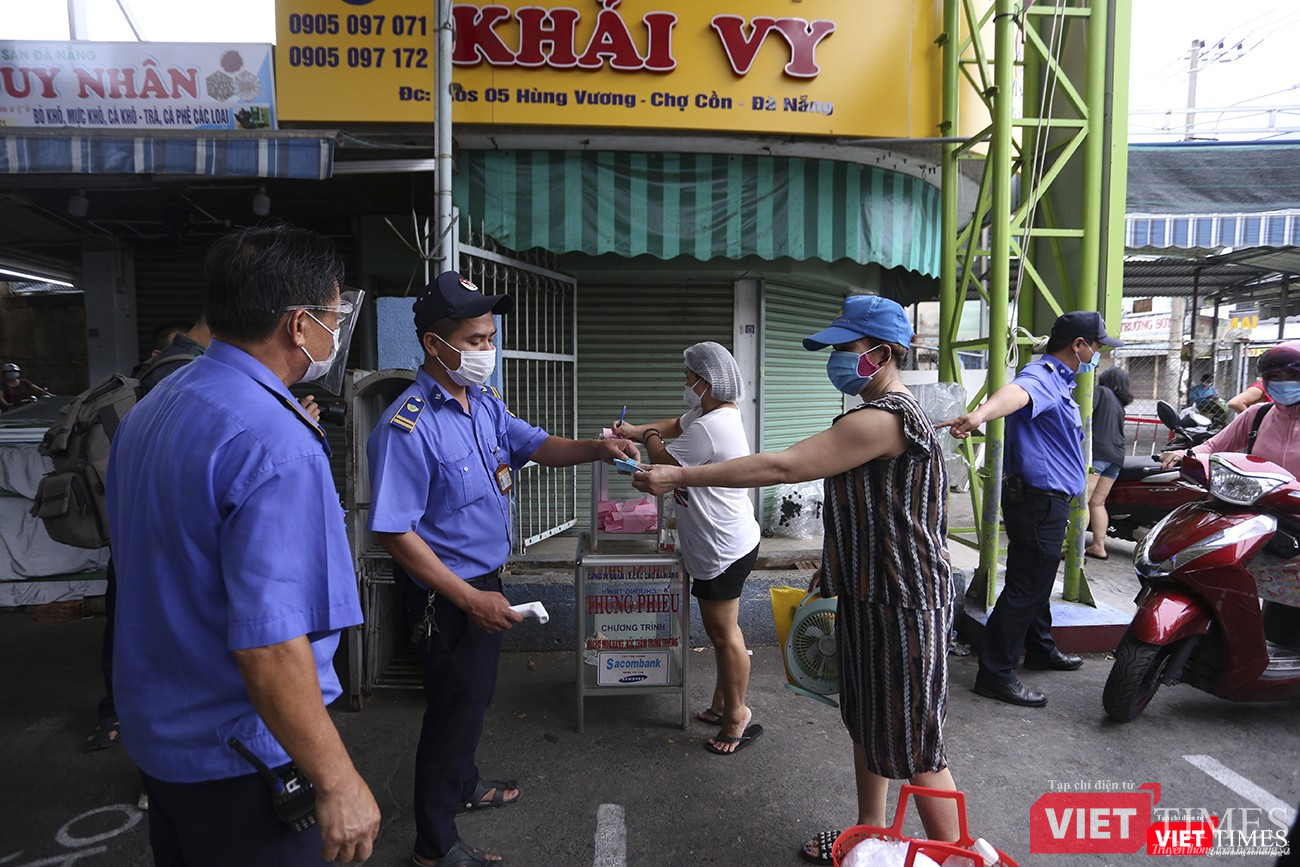 | Tại cổng chợ Hà Thân (quận Sơn Trà, Đà Nẵng), lực lượng kiểm soát đã túc trực |