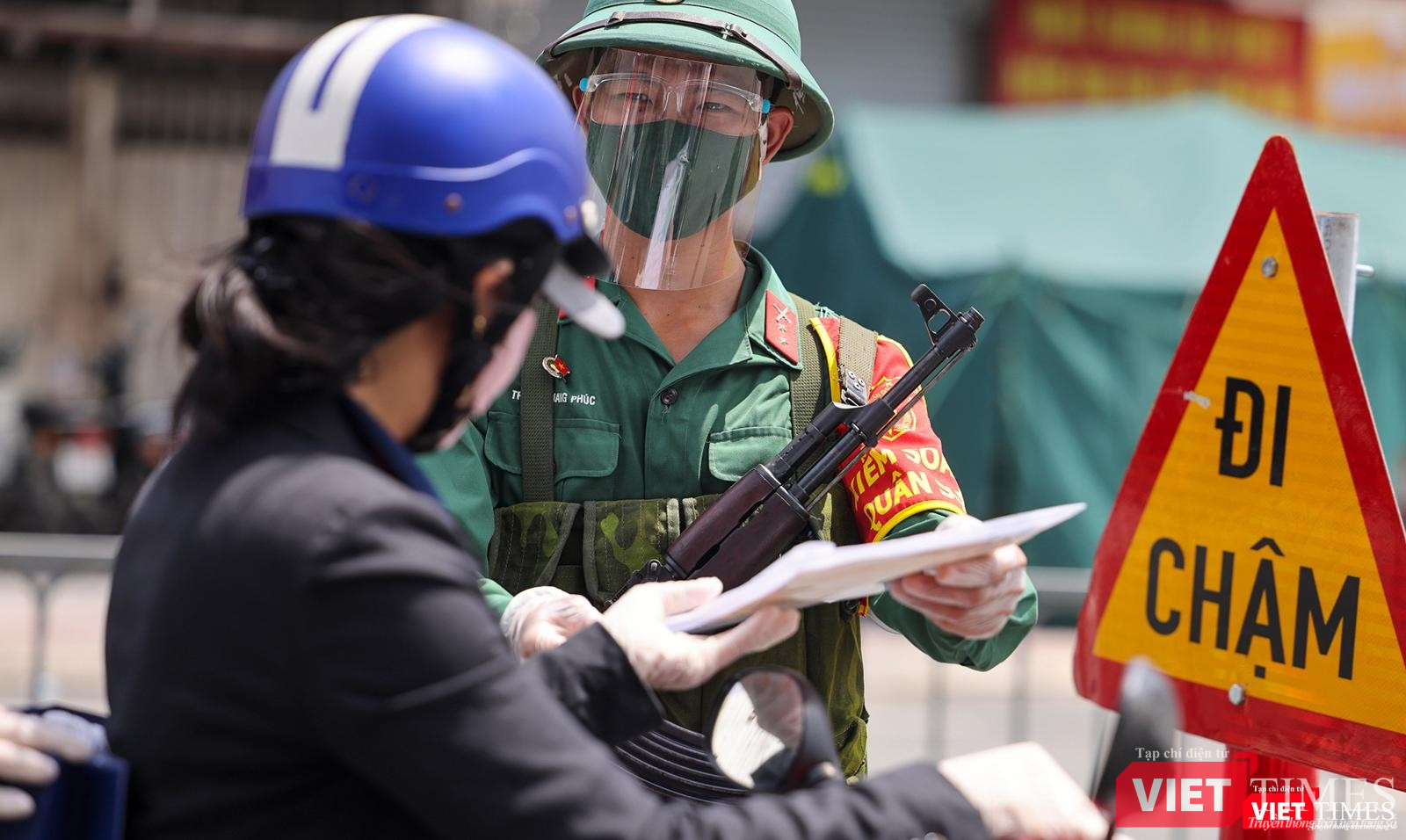 Lực lượng quân đội phối hợp cùng công an kiểm tra người lưu thông trên đường