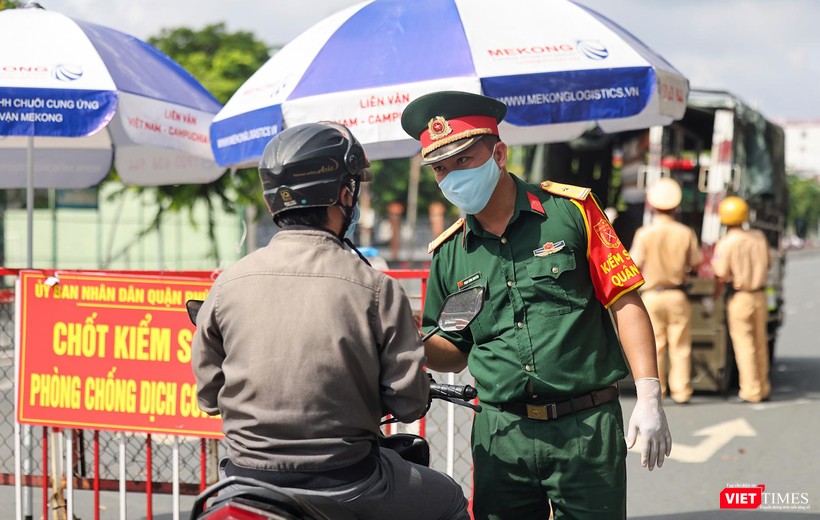 VietTimes – Sáng ngày 23/8, toàn TP HCM bắt đầu áp dụng giãn cách xã hội “ai ở đâu thì ở yên đấy”, đường sá vắng phương tiện, tại một số chốt chặn đã xuất hiện lực lượng quân đội có vũ trang kiểm soát.