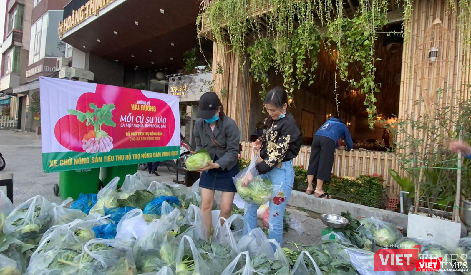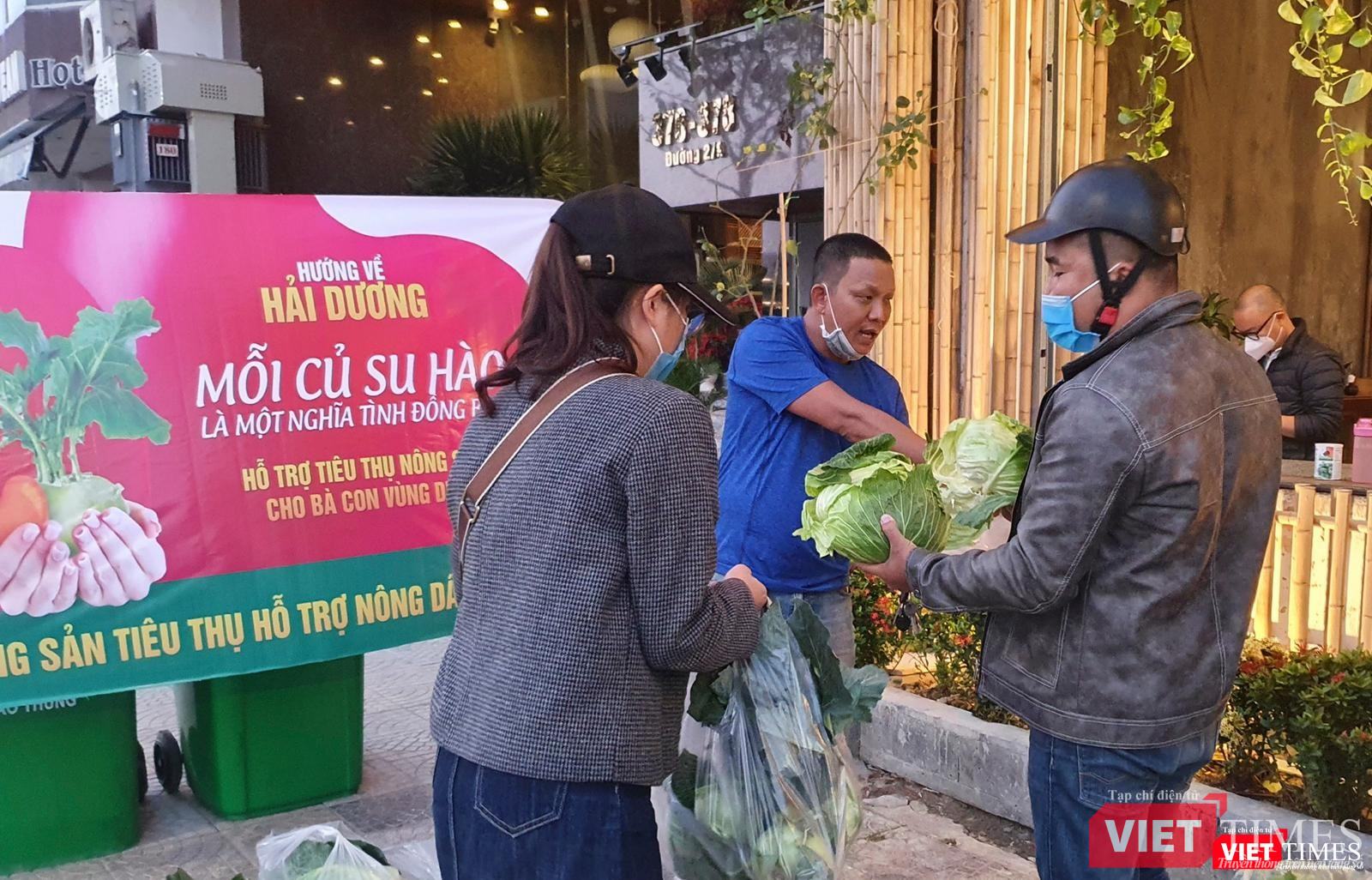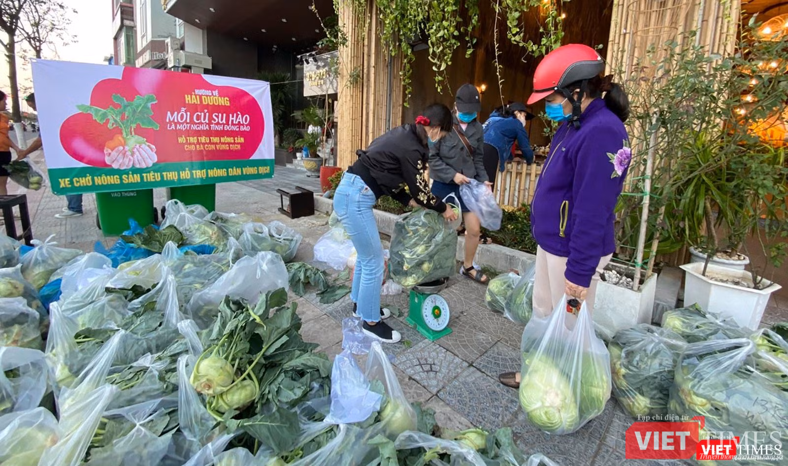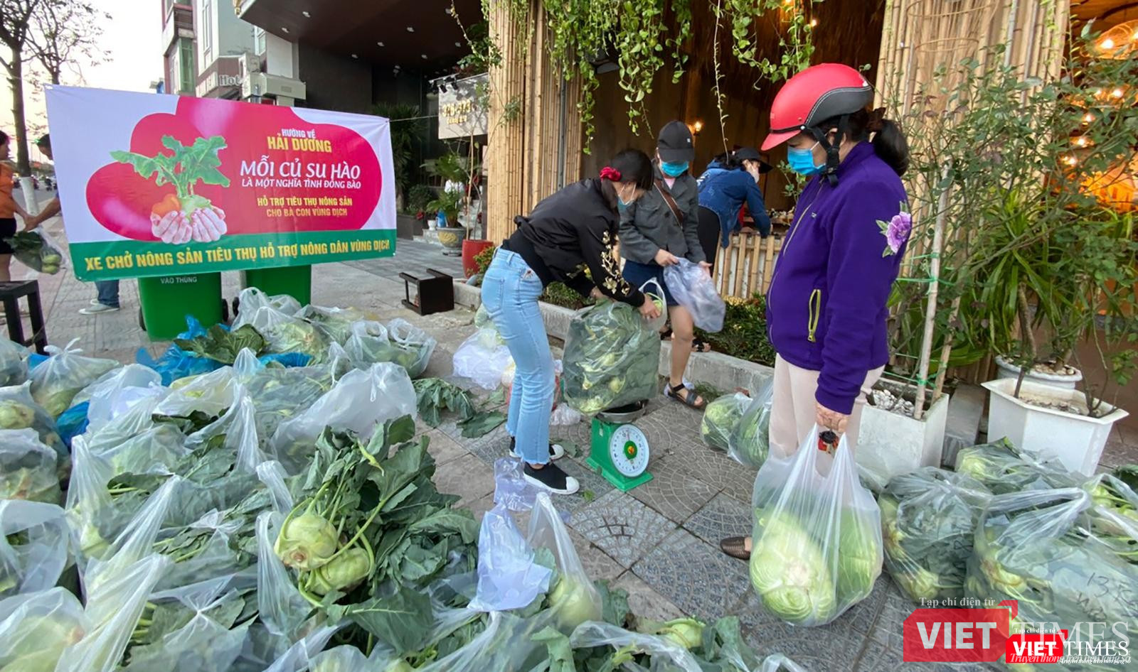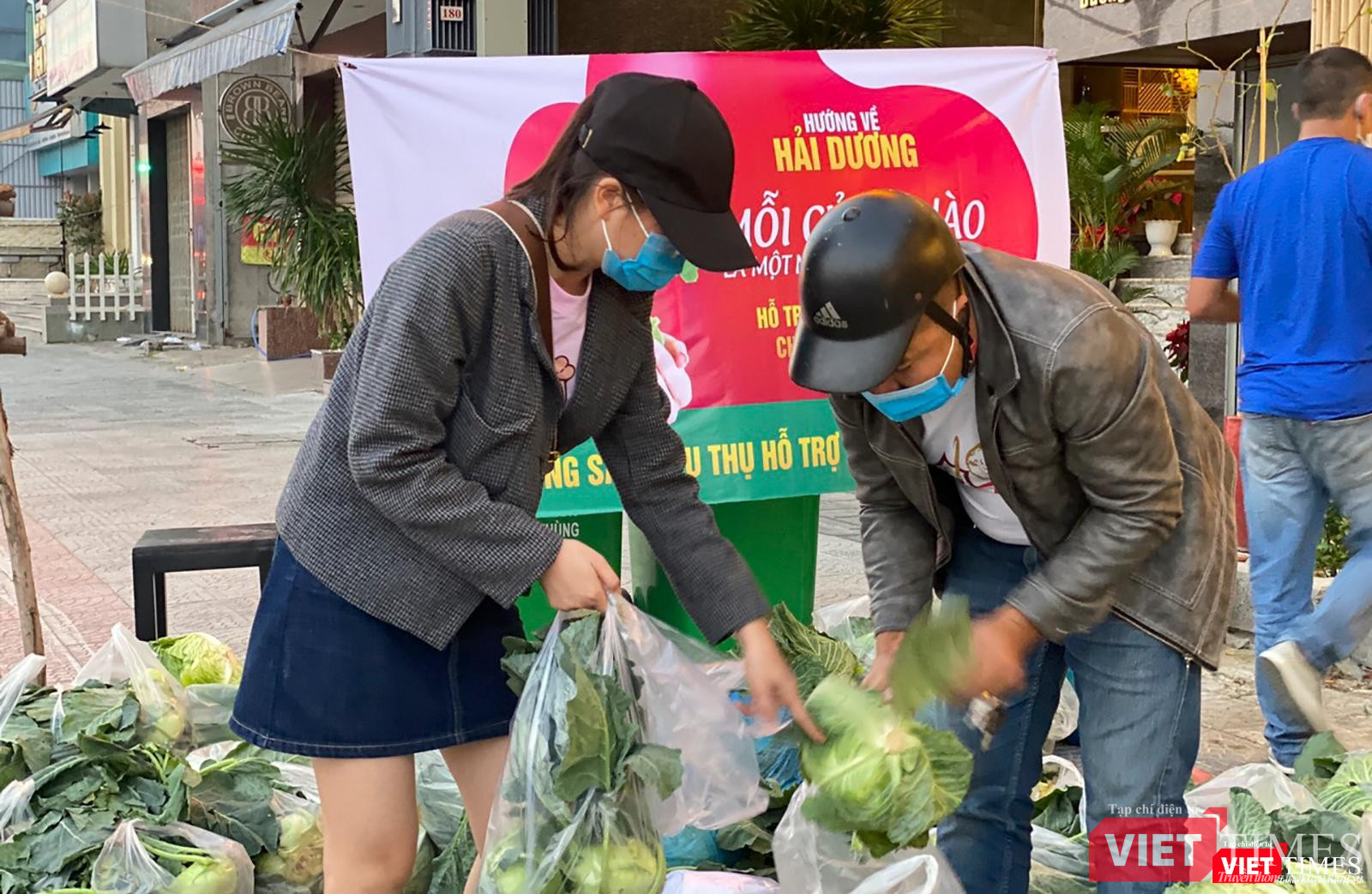 Mặc dù tối muộn, nhưng chiều tối ngày 24/2, trước số nhà 370 đường 2/9 (quận Hải Châu, TP Đà Nẵng) trở nên tấp nập với hàng trăm người mua, vui vẻ đến cùng chung tay giải cứu nông sản từ Hải Dương. Với mức giá 5.000 đồng/1 ký đối với bắp cải, 4.000 đồng/1 ký đối với su hào, nhiều người dân đã đến mua từ vài kg cho đến vài chục kg với mong muốn chung tay giúp nông dân Hải Dương vượt qua khó khăn.