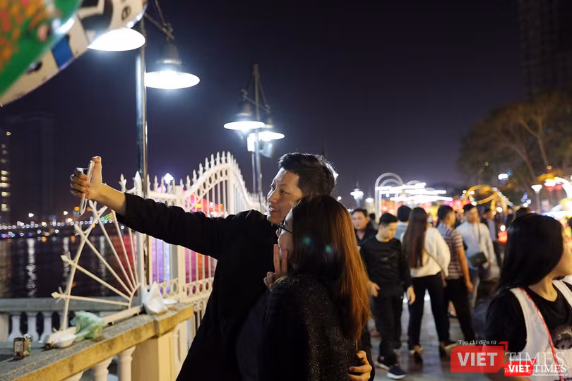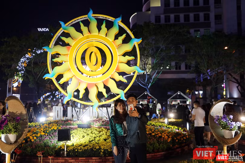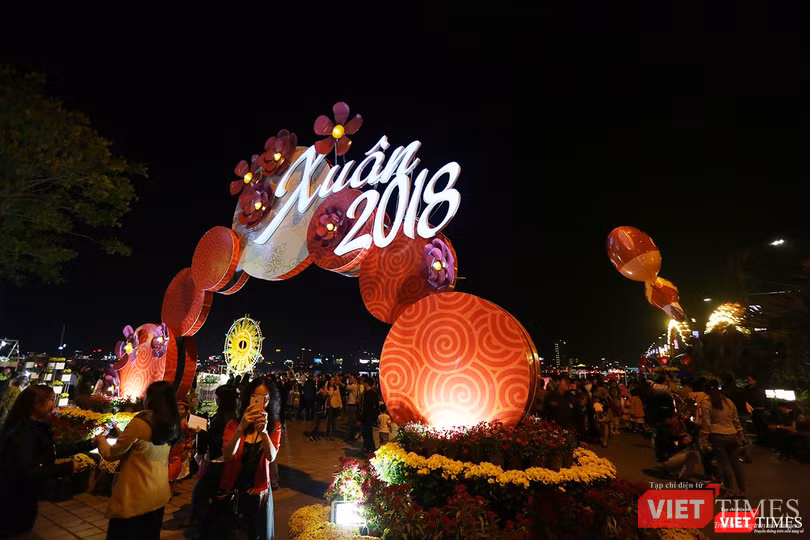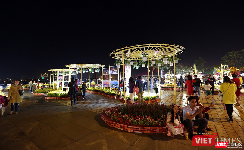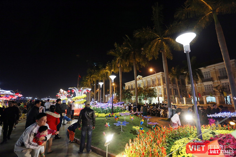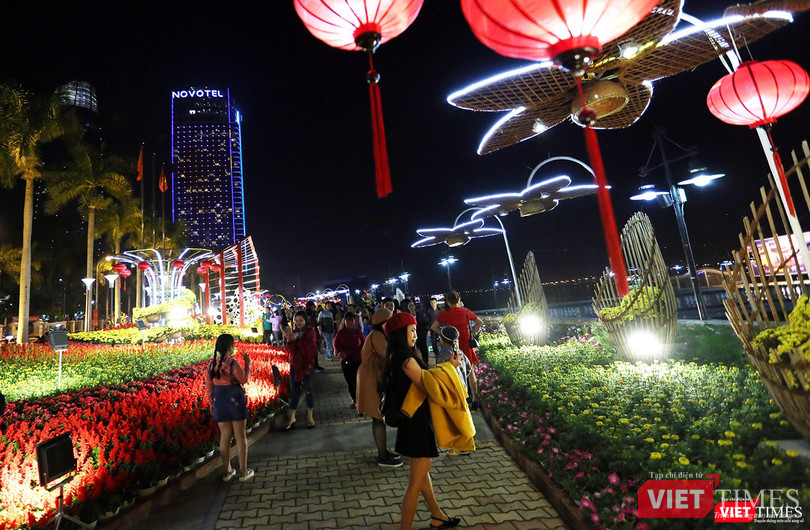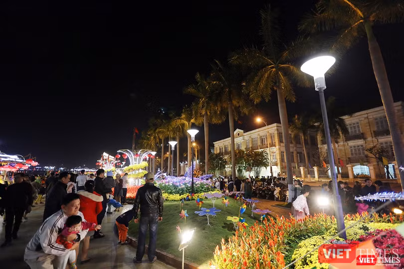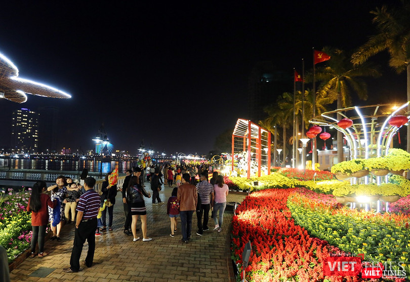 Đường hoa phía Tây Cầu Rồng trở thành tâm điểm du xuân đêm 30