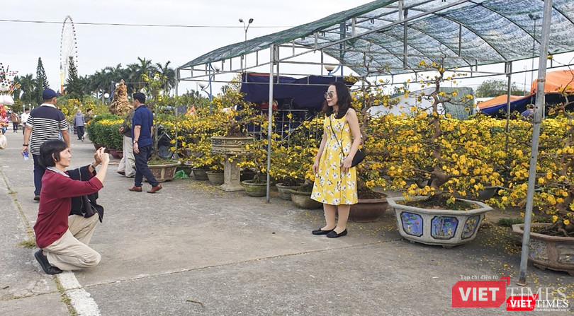 Bên những luống hoa, cây cảnh đầy sắc màu, cảnh dòng người mua bán, cùng những cô thiếu nữ xúng xính áo váy “đọ sắc” cùng hoa ở chợ hoa xuân Đà Nẵng khiến không khí Tết ở Đà Thành càng thêm rộn ràng...