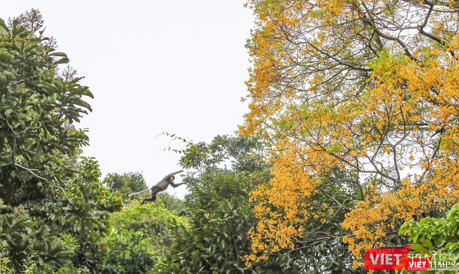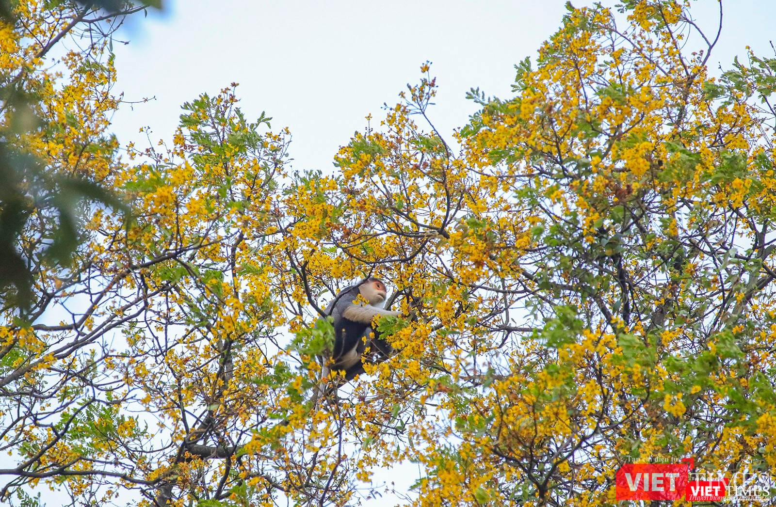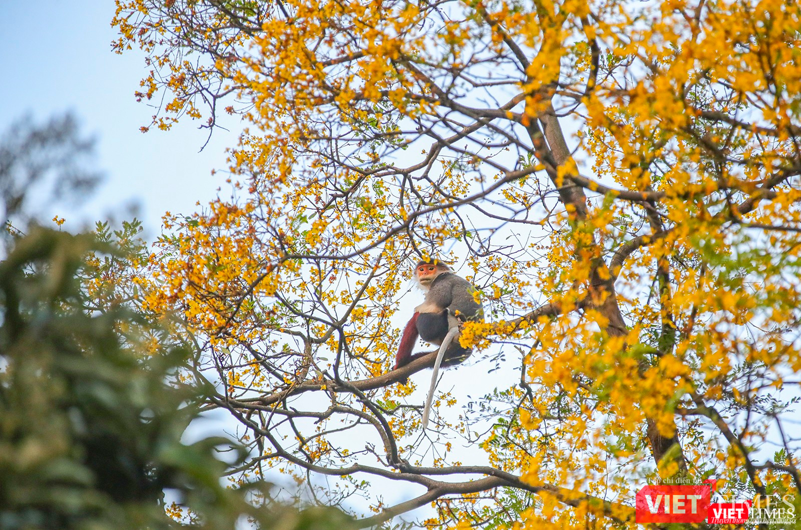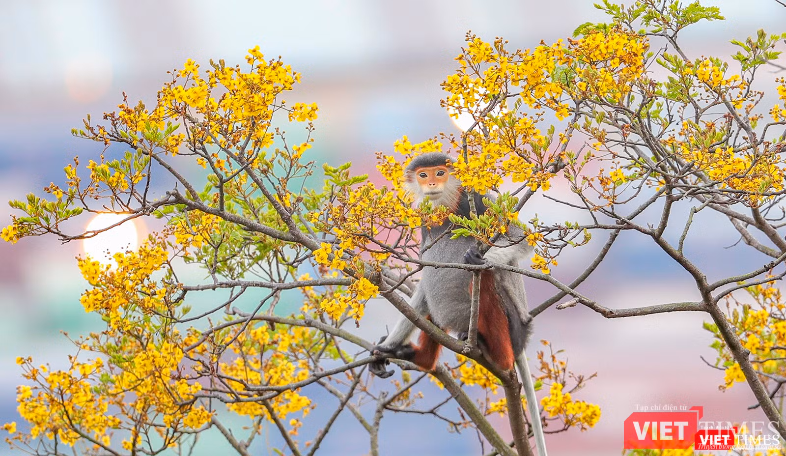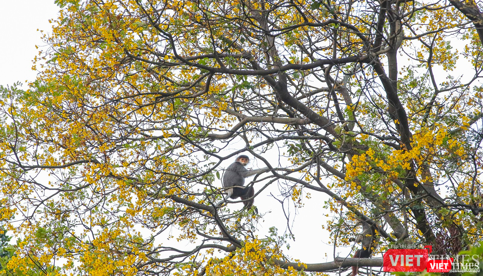 Những ngày này, mỗi ngày, bán đảo Sơn Trà (Đà Nẵng) đón nhận hàng ngàn lượt du khách trong nước và quốc tế đến tham quan, du lịch, ghi lại những hình ảnh sinh động, độc đáo về loài linh trưởng voọc chà vá chân nâu bên những nhành hoa lim xẹt vàng rực một góc trời.