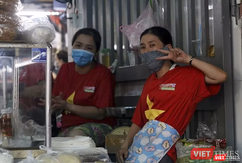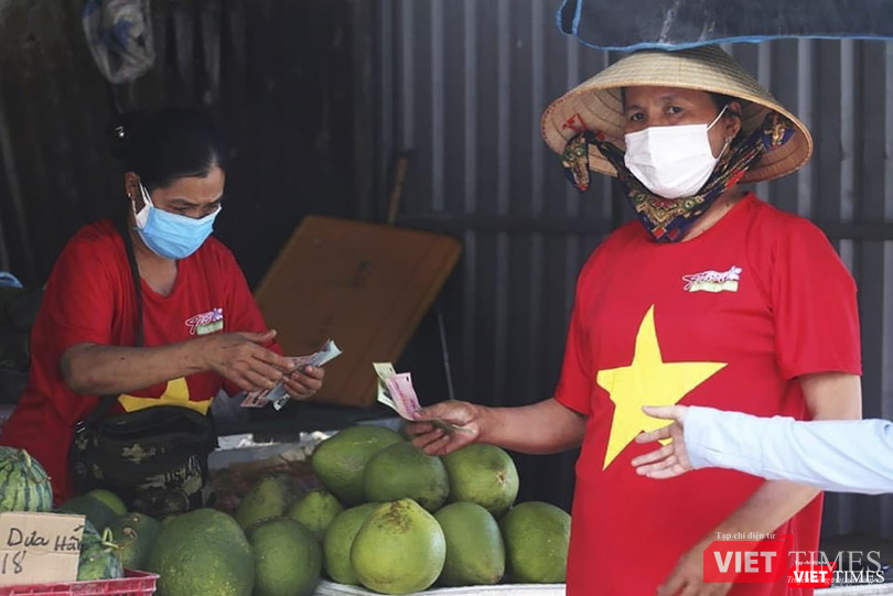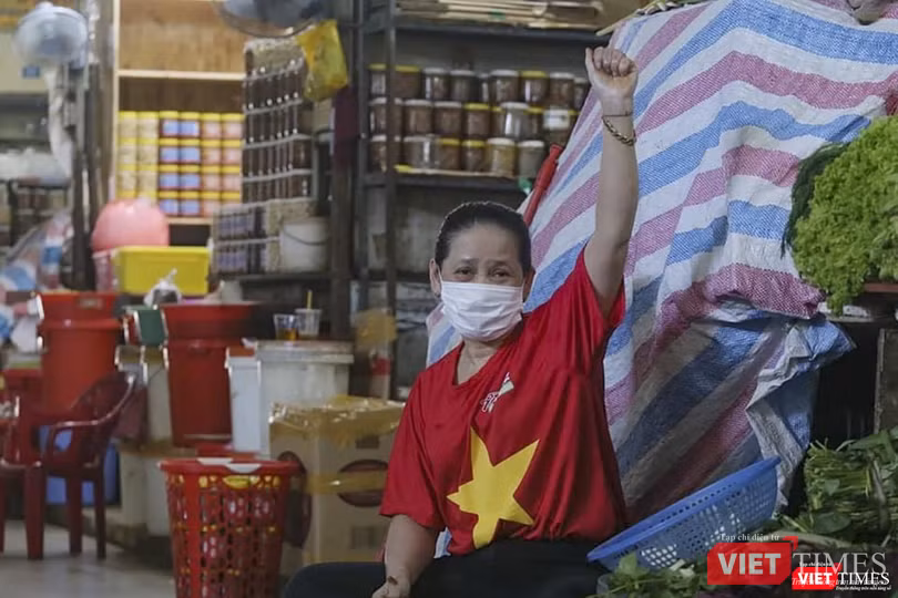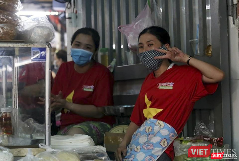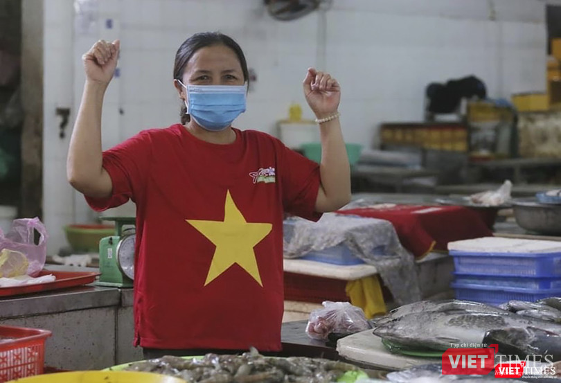 Tiểu thương Đà Nẵng mặc áo cờ đỏ sao vàng cổ động vượt qua dịch COVID-19
