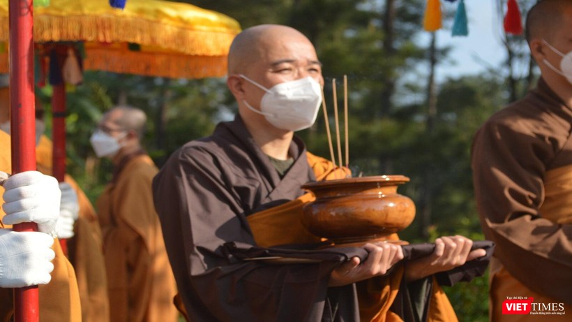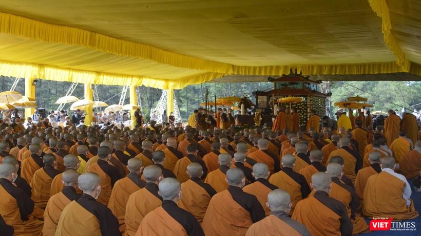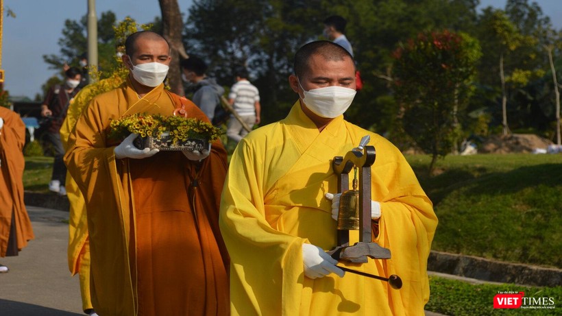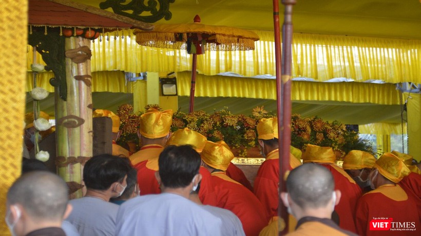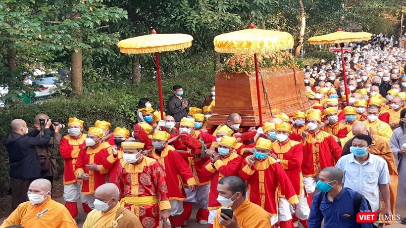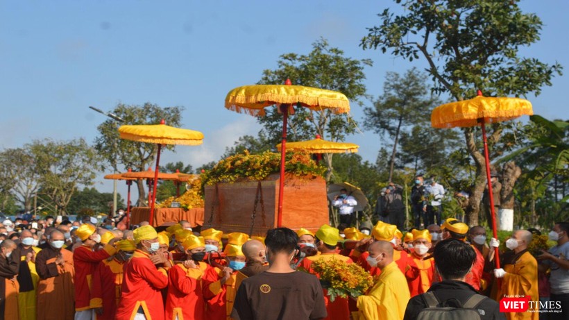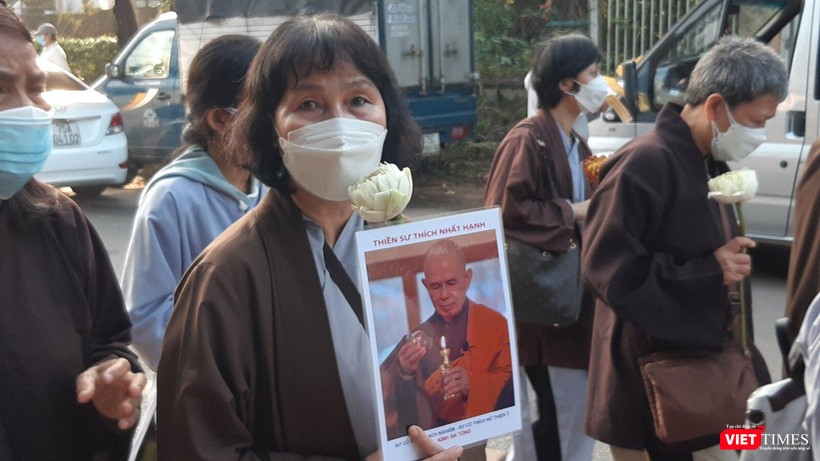 Từ sáng sớm, hàng ngàn tăng ni, phật tử, người dân... đổ về Tổ đình Từ Hiếu (TP Huế, tỉnh Thừa Thiên Huế), rồi nối bước đi theo di hài Thiền sư Thích Nhất Hạnh đến Công viên nghĩa trang Vĩnh Hằng Vườn Địa Đàng (phường Thủy Bằng, TP Huế) để làm lễ Trà Tỳ.