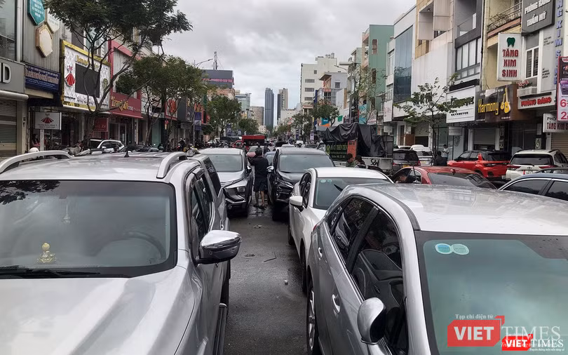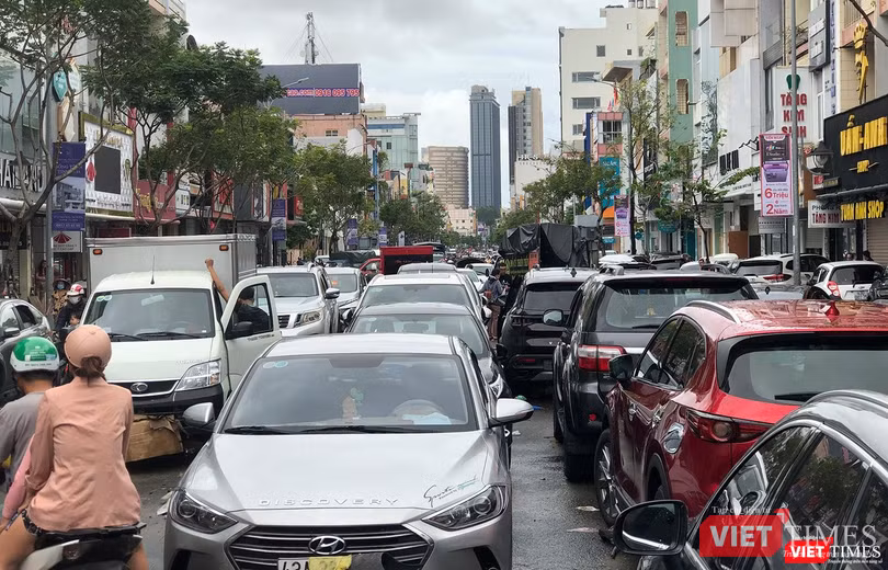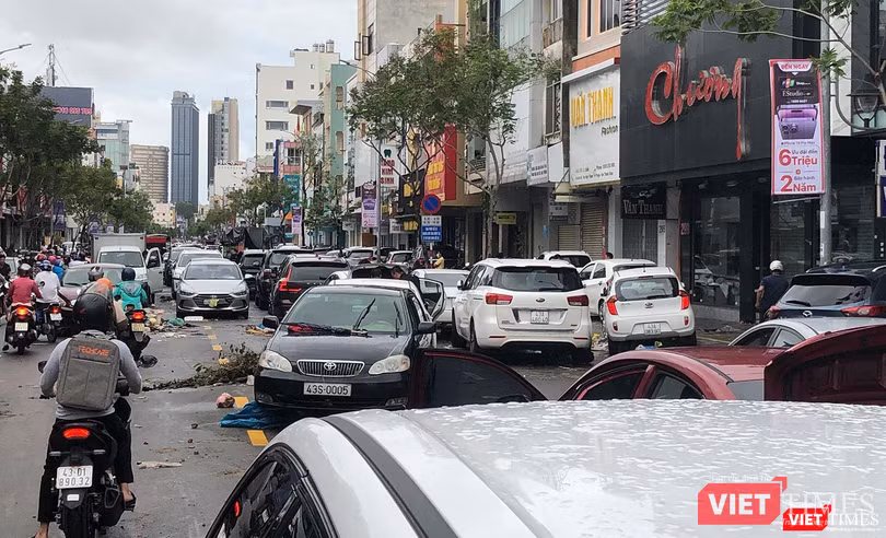 Nặng nhất là tuyến đường Lê Duẩn, quận Hải Châu (đoạn Ông Ích Khiêm đến Hoàng Hoa Thám), hàng trăm phương tiện ô tô bị chết máy dồn lại khiến giao thông tại đây bị ùn ứ.